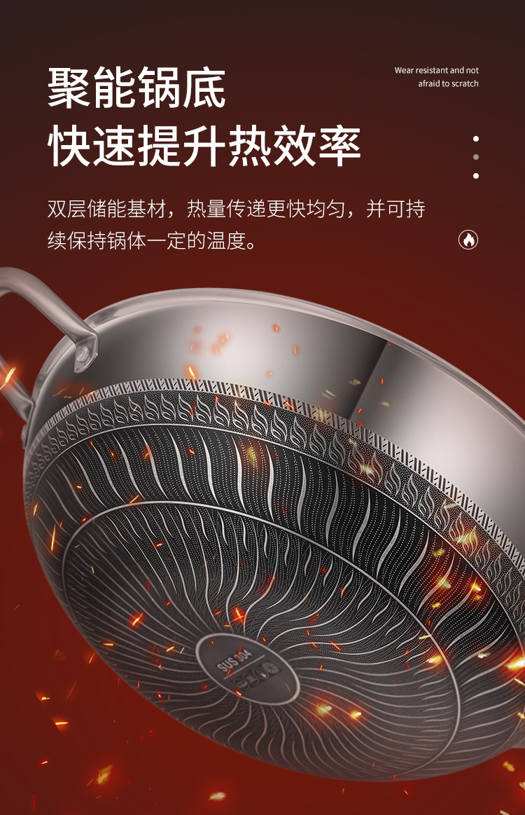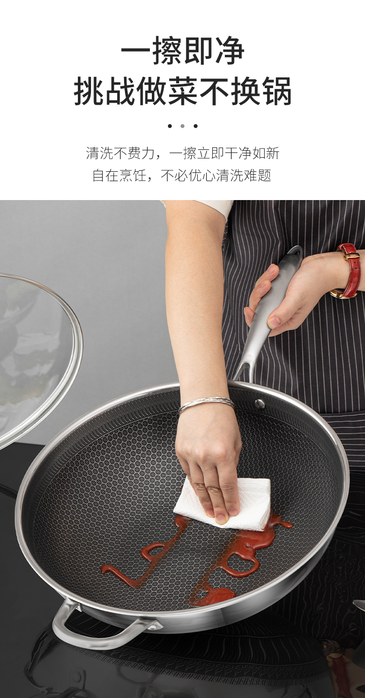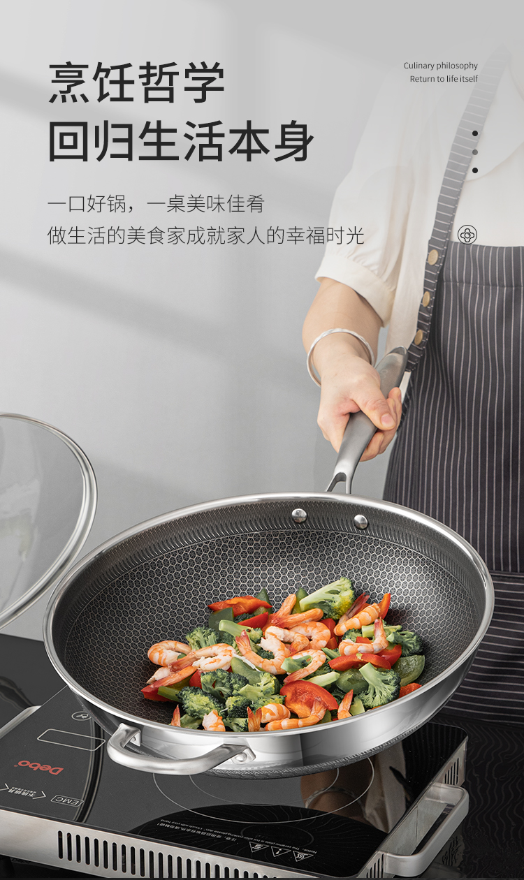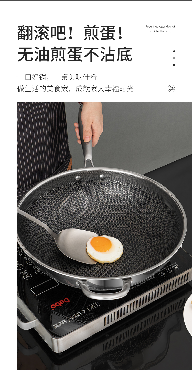 Debo/德铂36cm穆里尼奥双面屏不锈钢炒锅DEP-DS303
