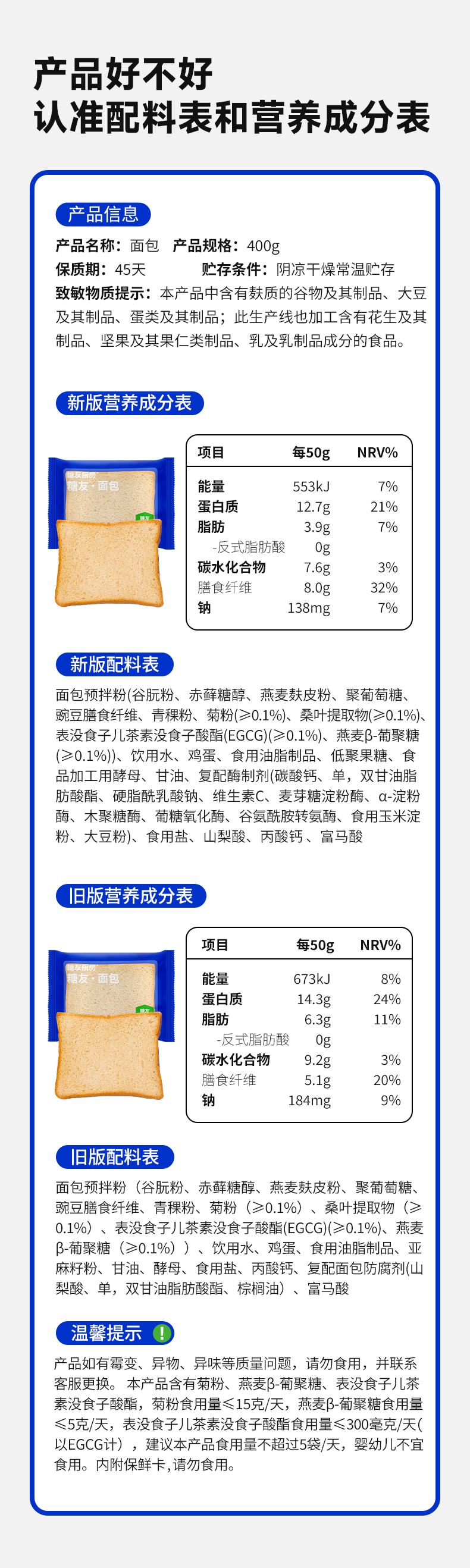 商品名称:糖友厨房糖友原味面包整箱400g