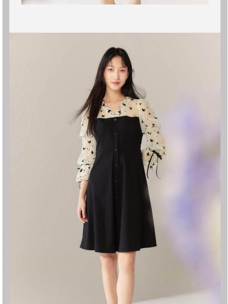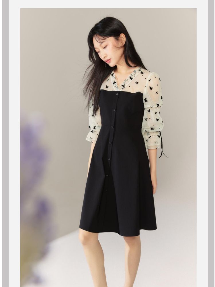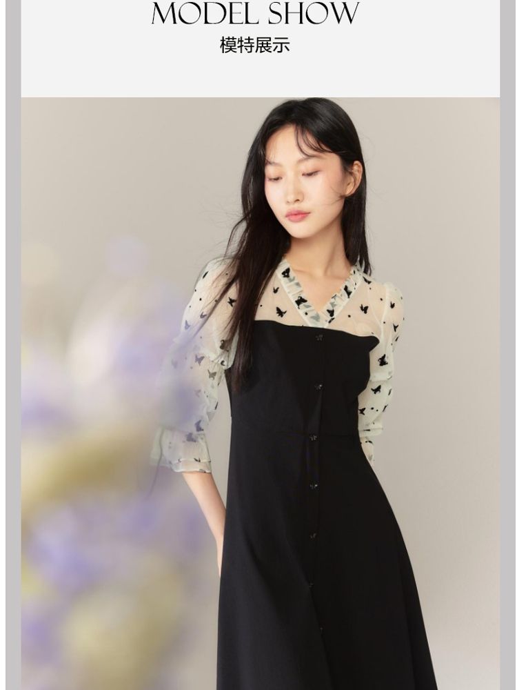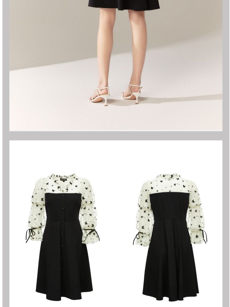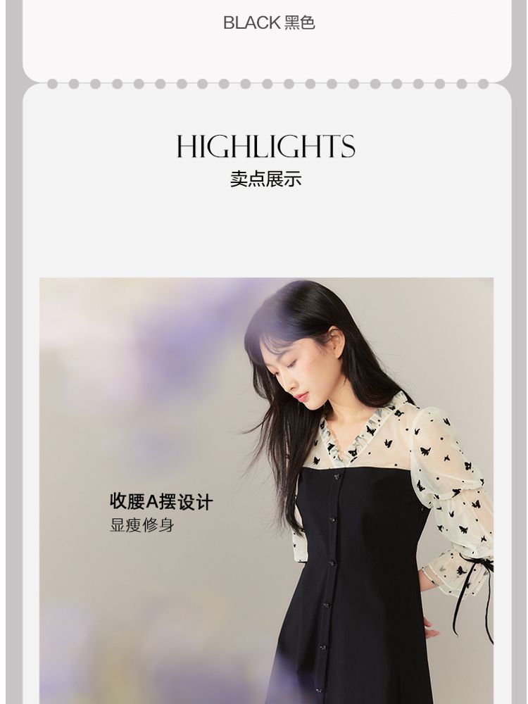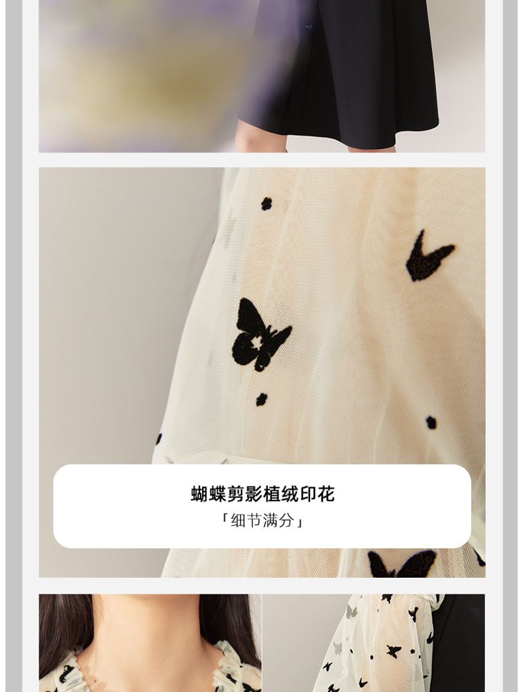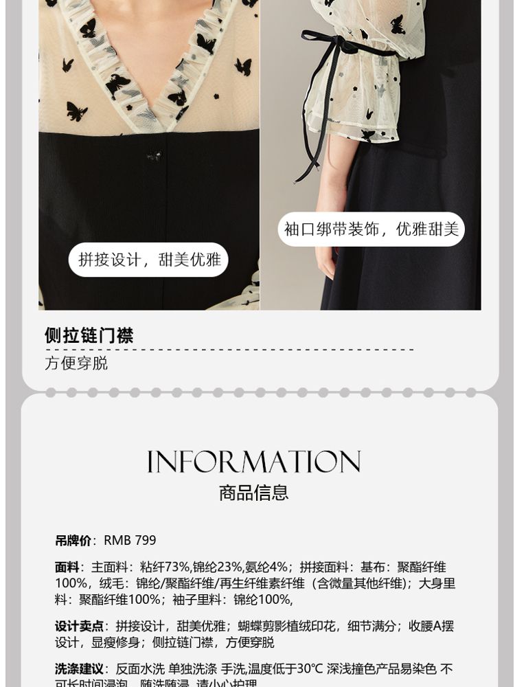 商品名称:【蝴蝶剪影植绒印花拼接设计】收腰显瘦专柜款袖口绑带连衣裙 676497