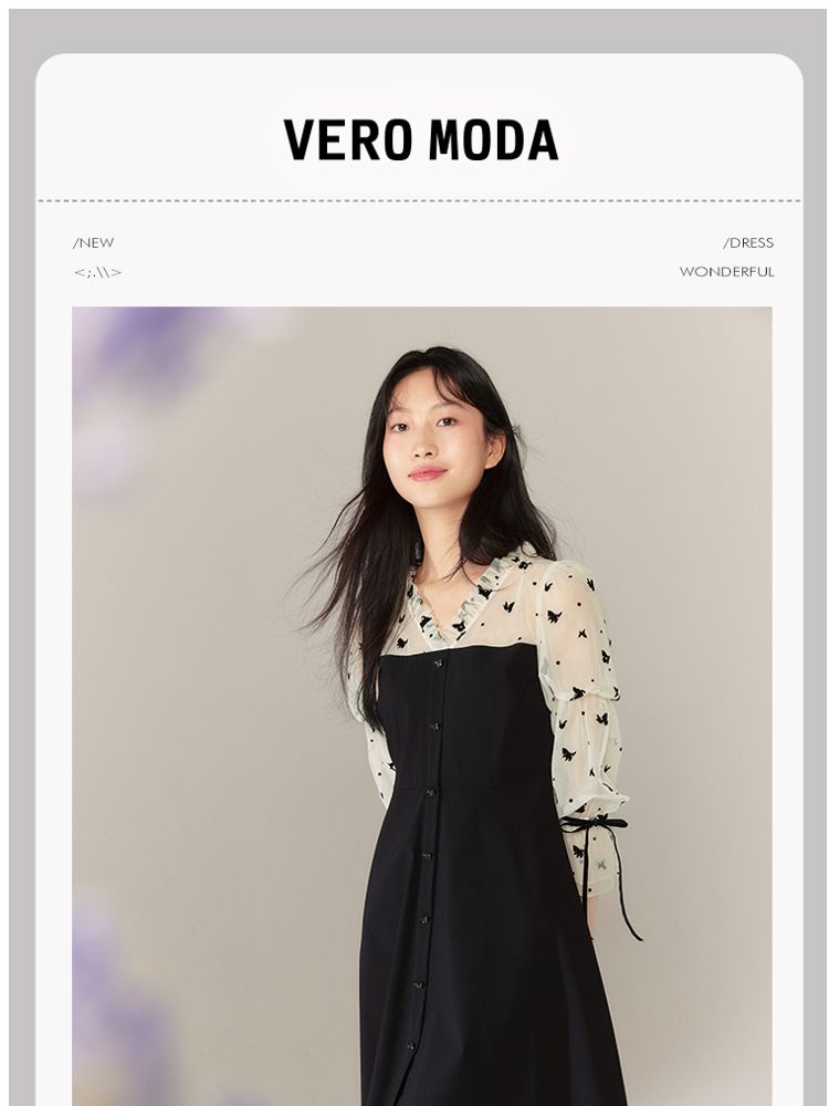 【蝴蝶剪影植绒印花拼接设计】收腰显瘦专柜款袖口绑带连衣裙 676497