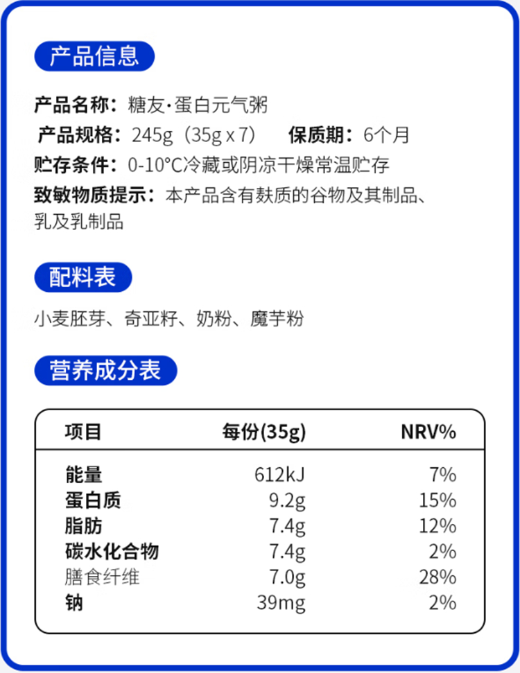 商品名称:糖友厨房糖友蛋白元气粥245g
