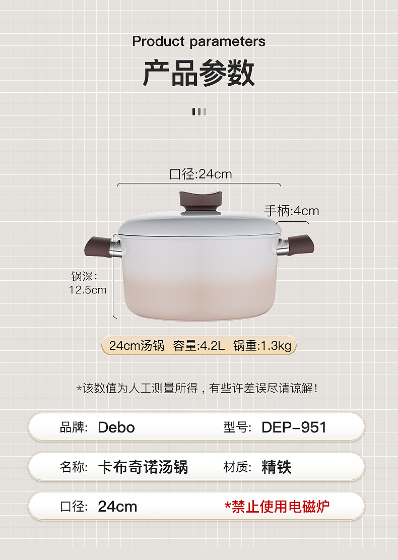 商品名称:Debo/德铂24cm卡布奇诺汤锅DEP-951