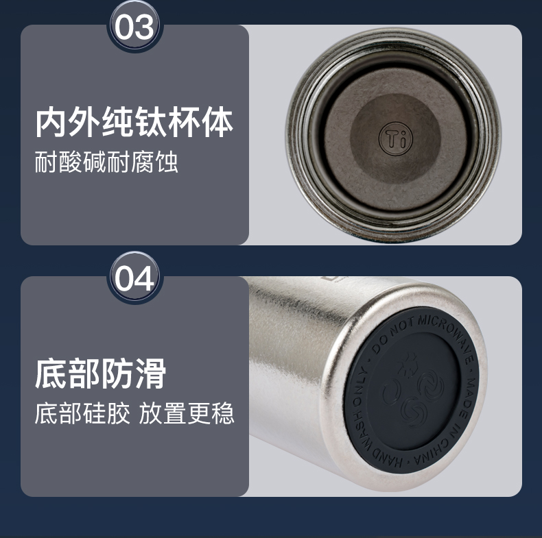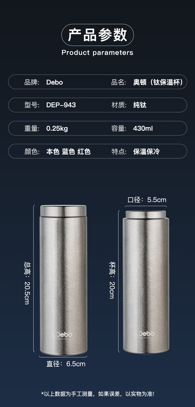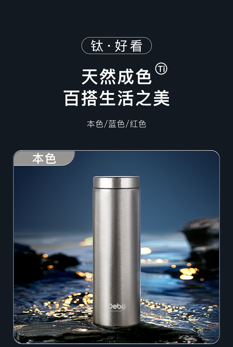 商品名称:Debo/德铂430毫升奥顿纯钛保温杯DEP-943