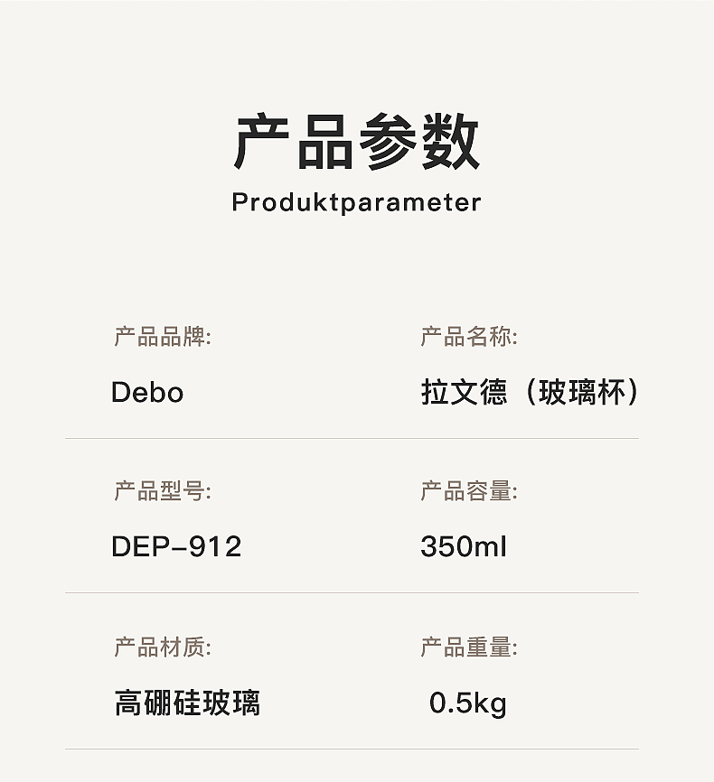 商品名称:Debo/德铂350毫升拉文德双层玻璃杯DEP-912