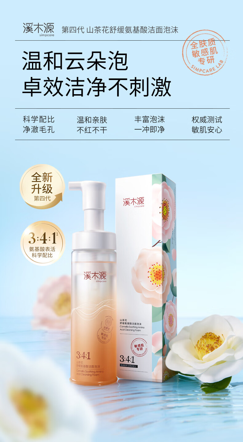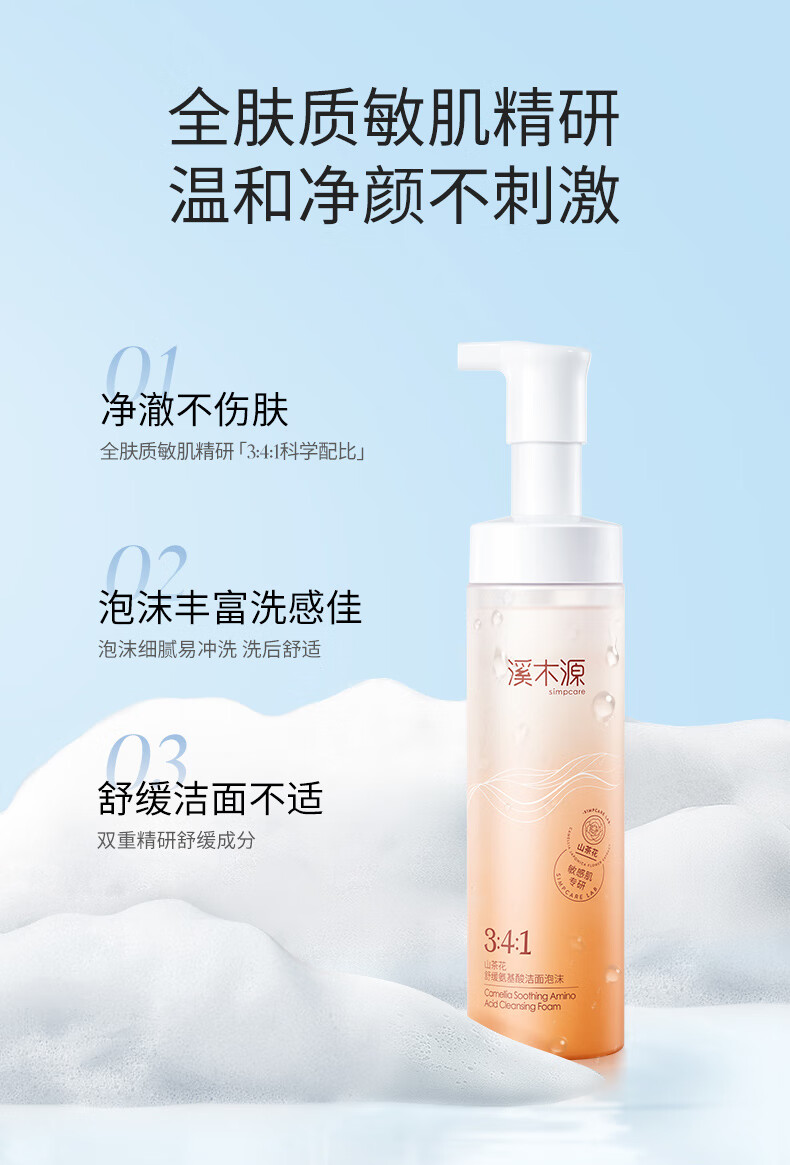 商品名称:溪木源山茶花舒敏修护洁面水乳组合370ml