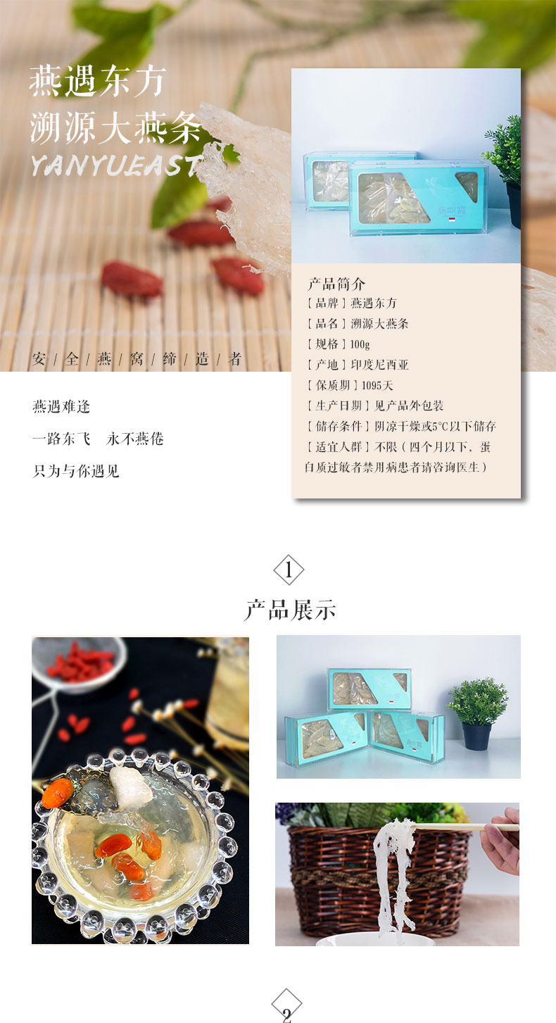 商品名称:燕遇东方印度尼西亚进口溯源大燕条燕窝礼盒100g
