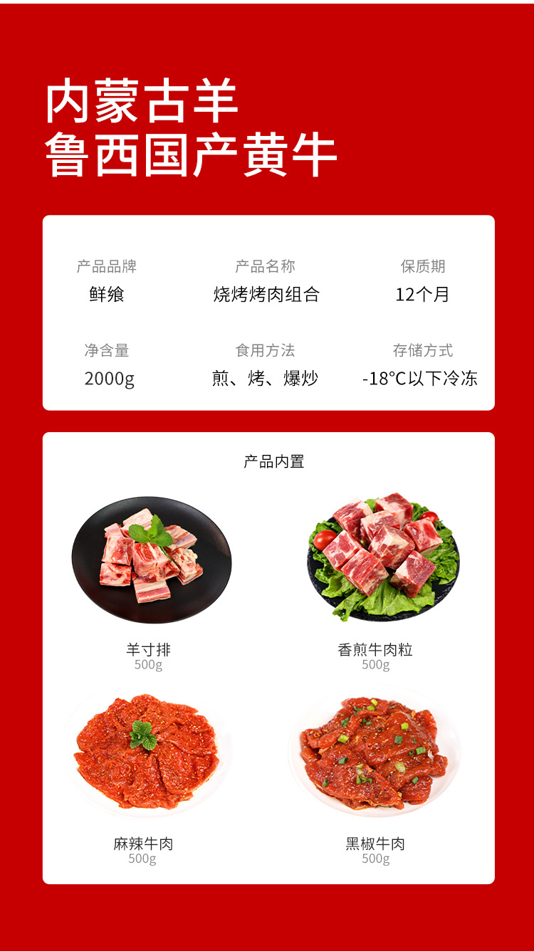 商品名称:【顺丰配送】鲜飨烧烤烤肉组合2000g