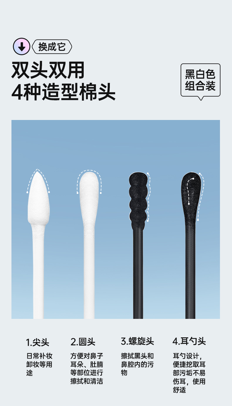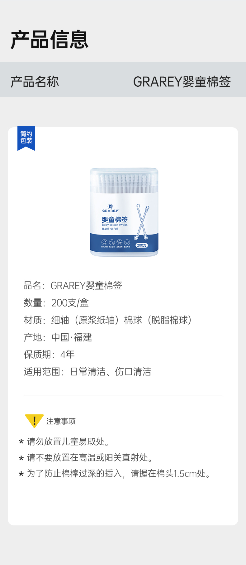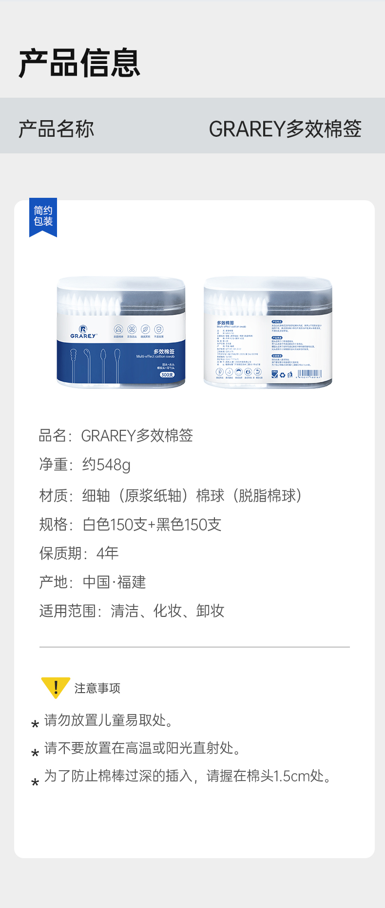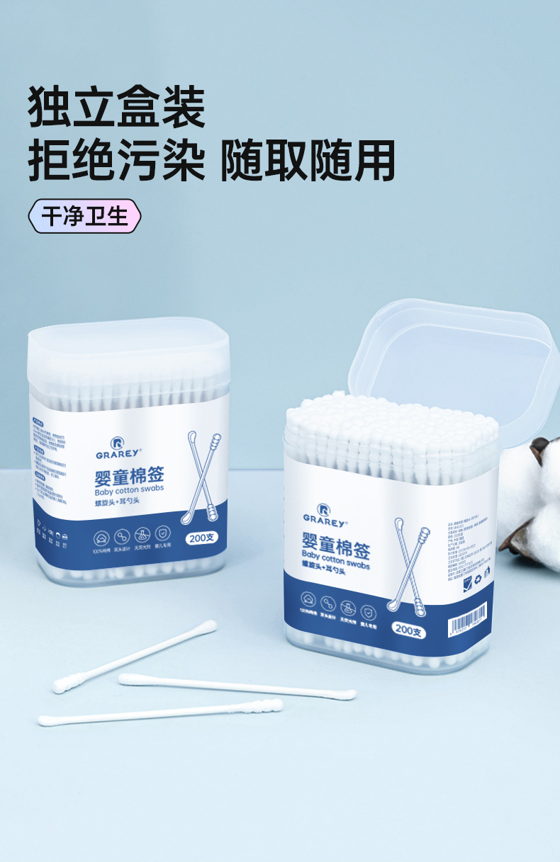 商品名称:GRAREY/格瑞亚亲子棉签套装(多效棉签2盒+婴童棉签2盒)共1000支