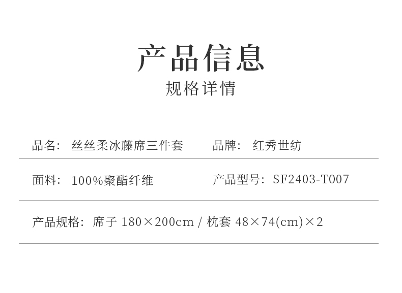 商品名称:红秀世纺丝丝柔冰藤席三件套180*200cm