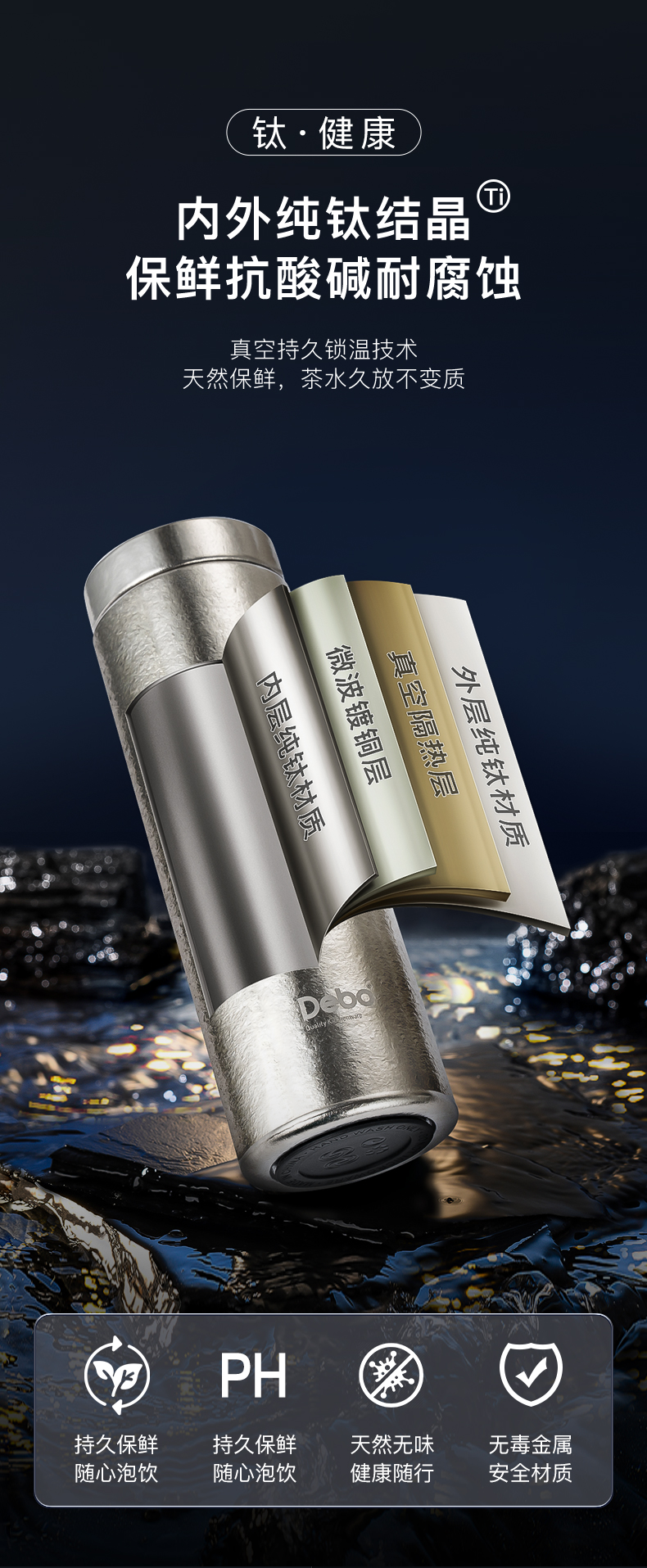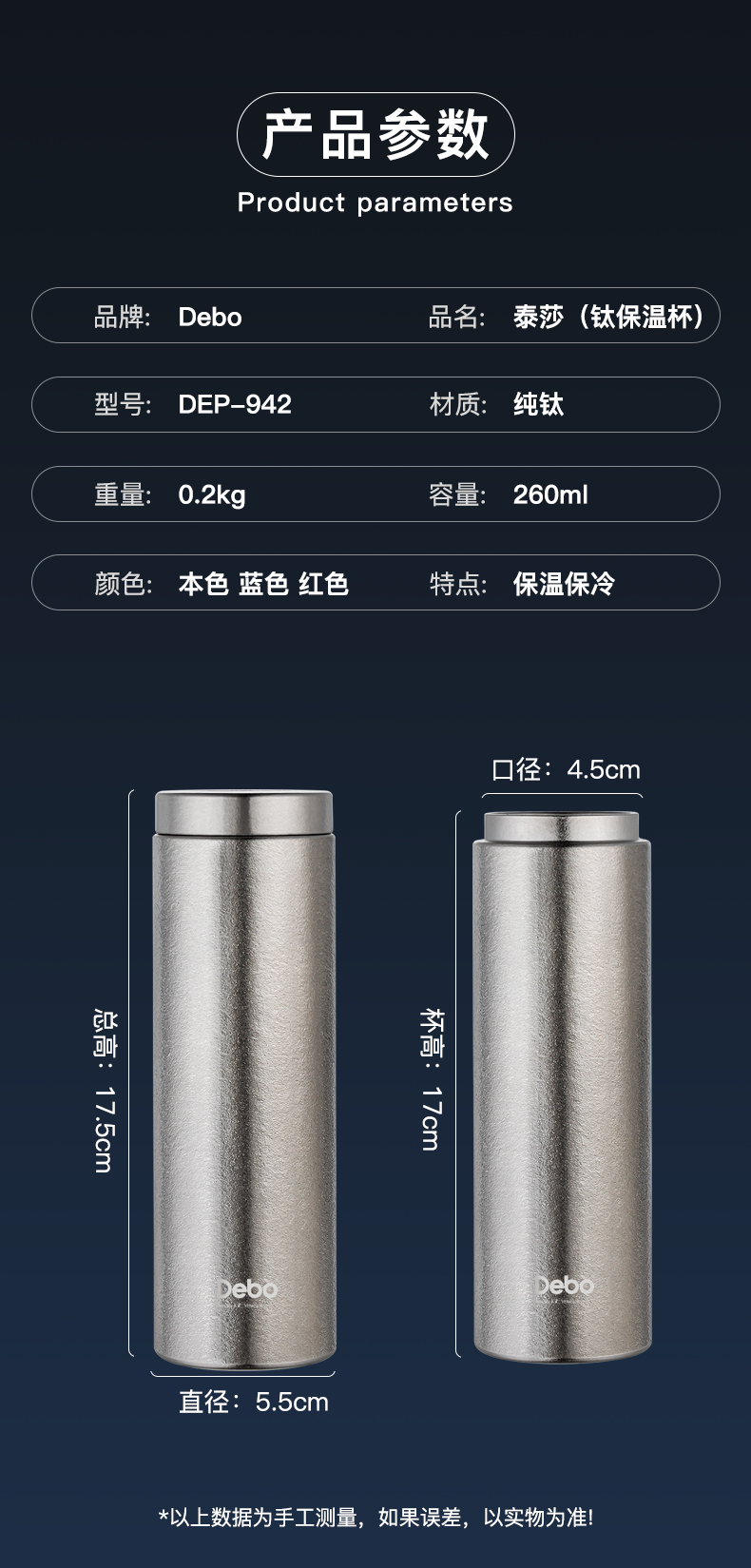 商品名称:Debo/德铂260毫升泰莎纯钛保温杯DEP-942