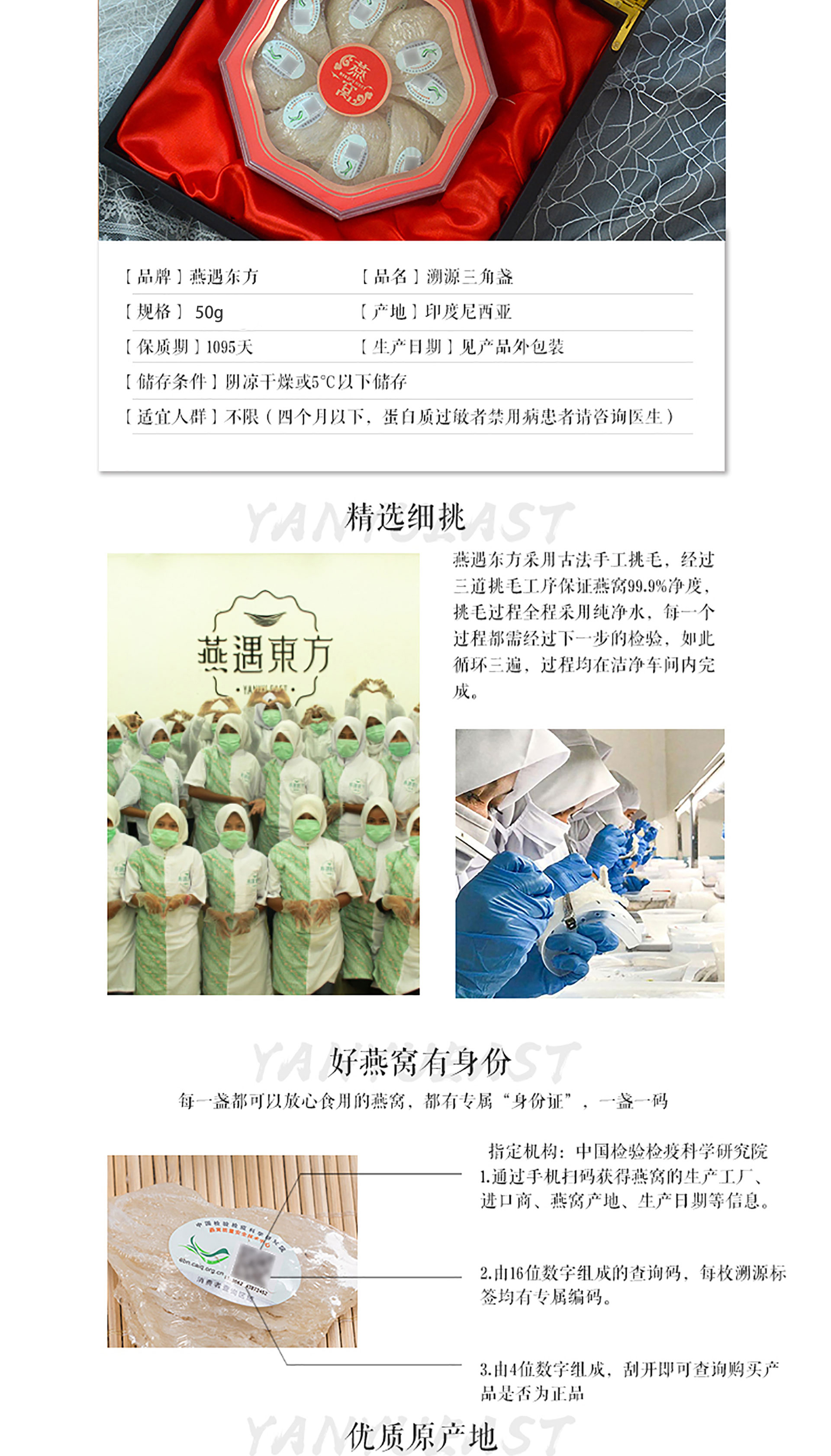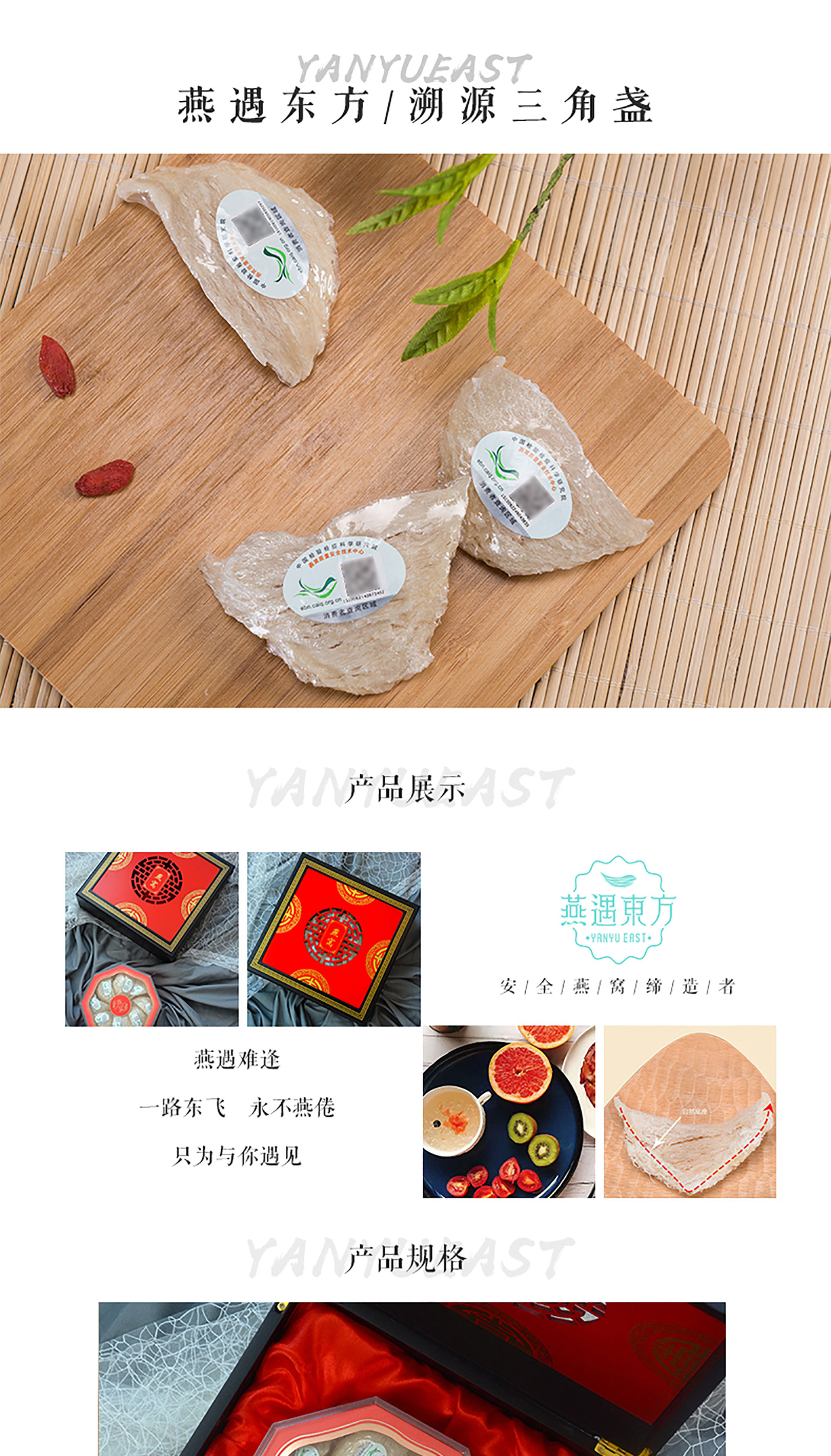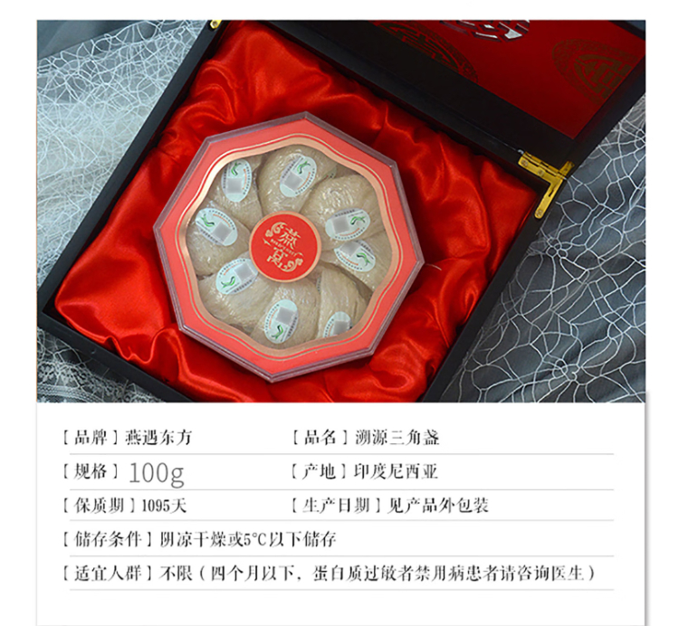 商品名称:燕遇东方印度尼西亚进口]溯源三角盏燕窝礼盒