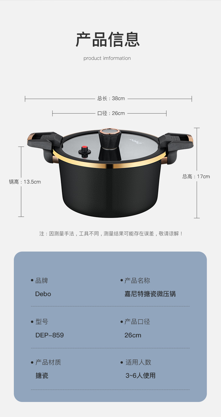 商品名称:Debo/德铂26cm嘉尼特搪瓷微压锅DEP-859