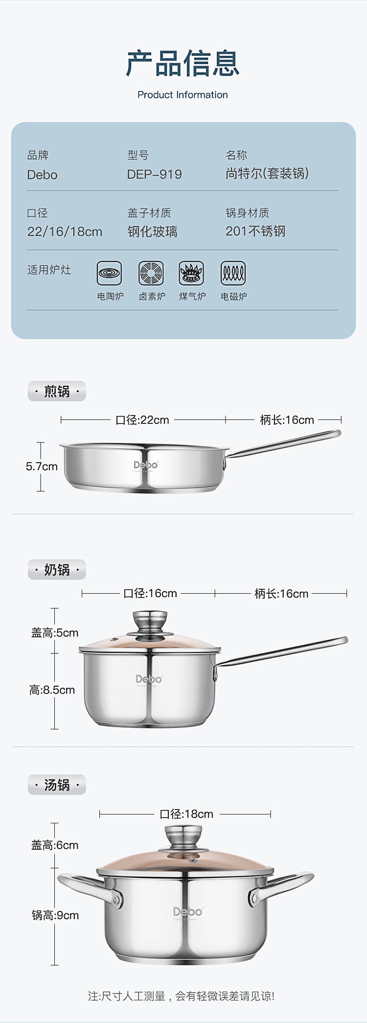商品名称:Debo/徳铂尚特尔锅具三件套DEP-919