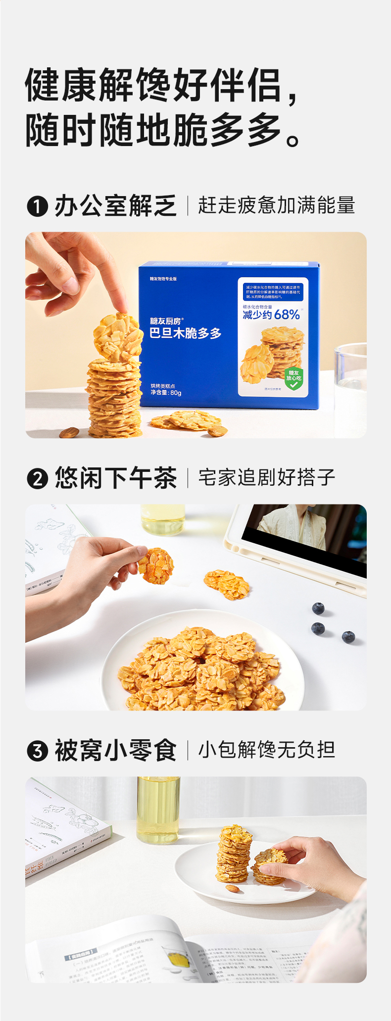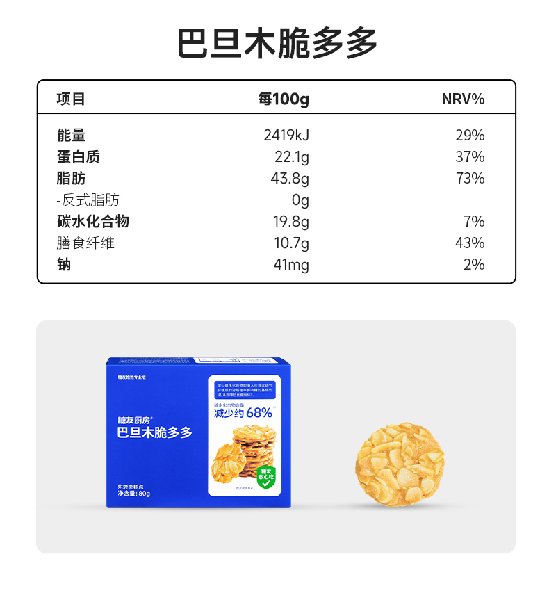 商品名称:糖友厨房巴旦木脆多多糕点80g