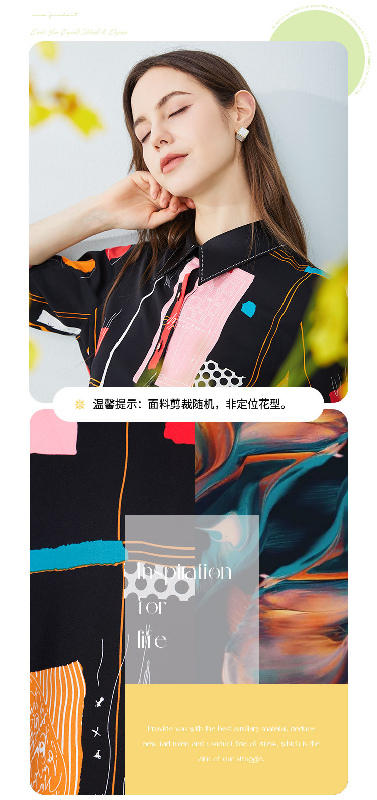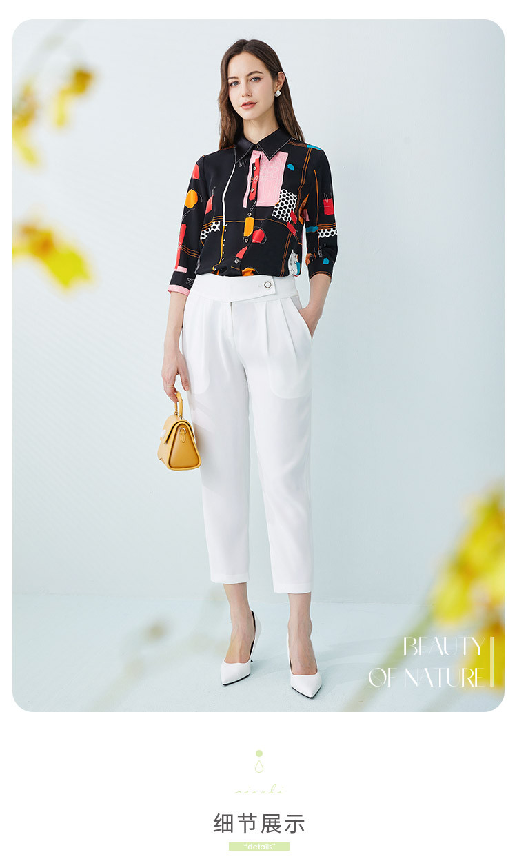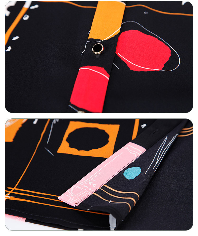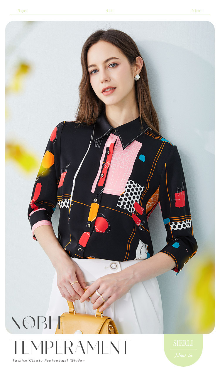 商品名称:商场同款春季不规则几何印花小众宽松翻领衬衣 010975