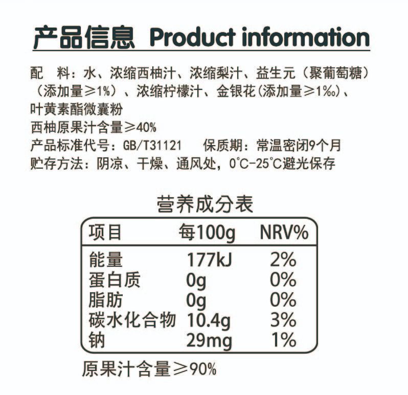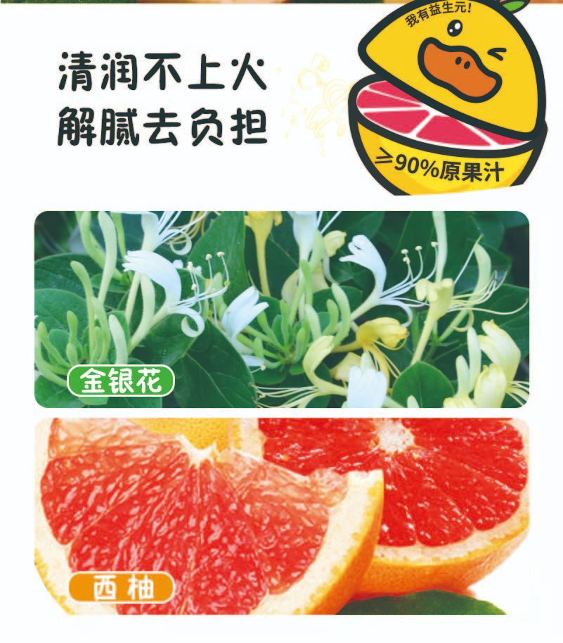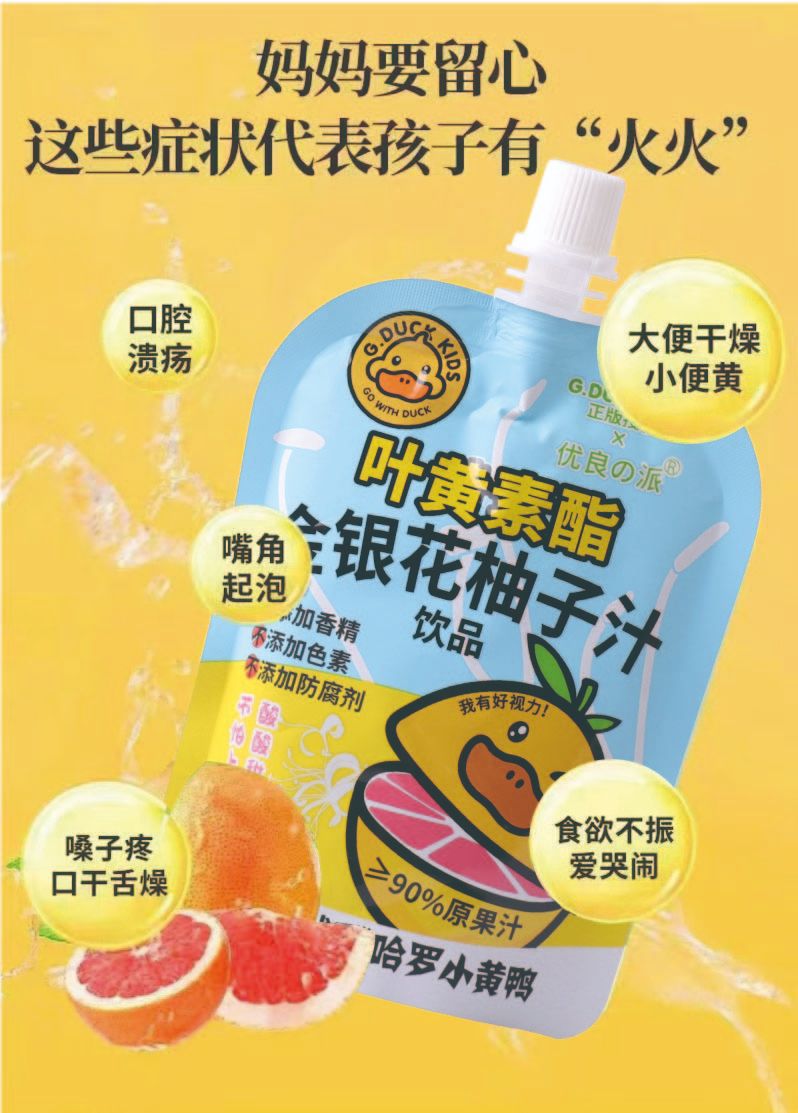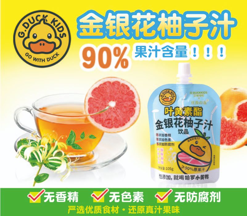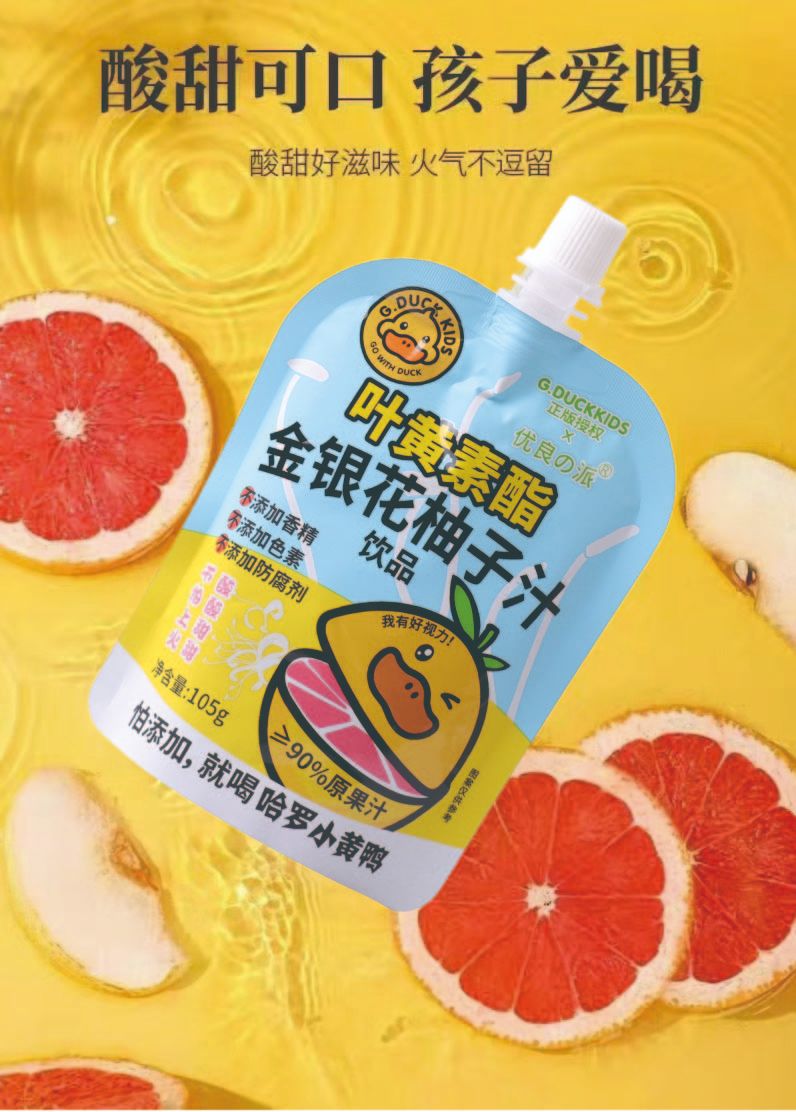 商品名称:小黄鸭金银花柚子汁叶黄素酯儿童清润降火105g*8