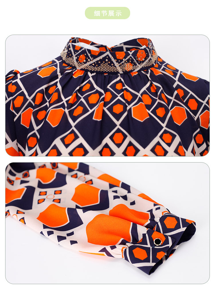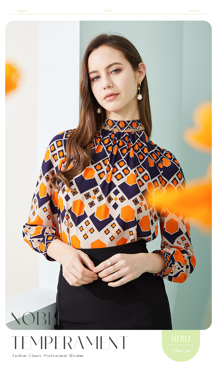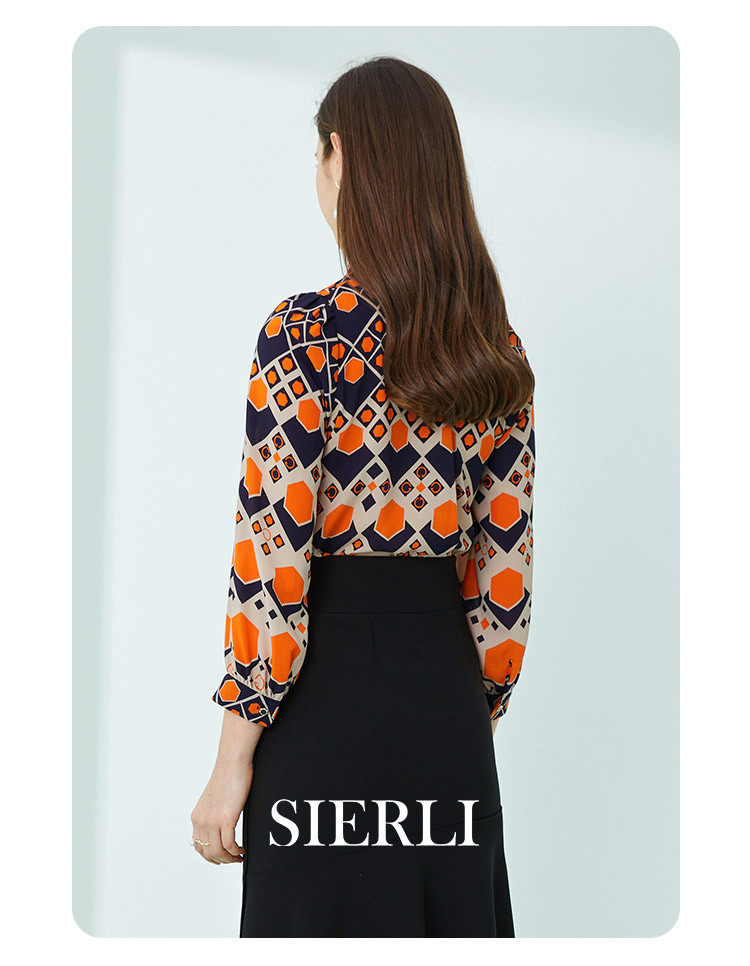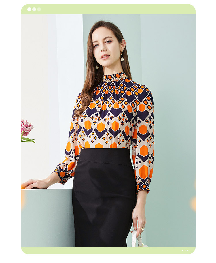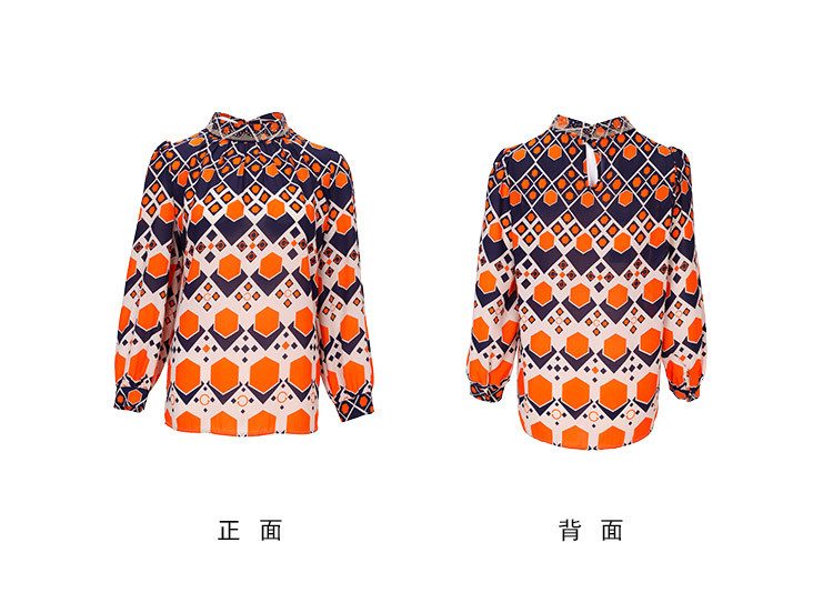 商品名称:商场同款春季通勤立领几何印花法式气质长袖衬衣 961375