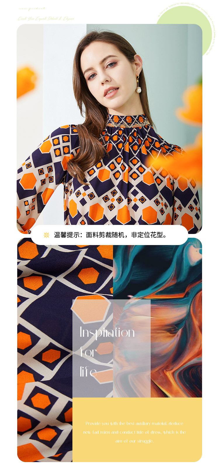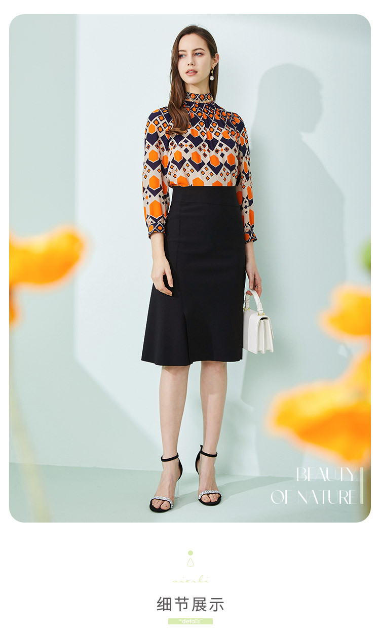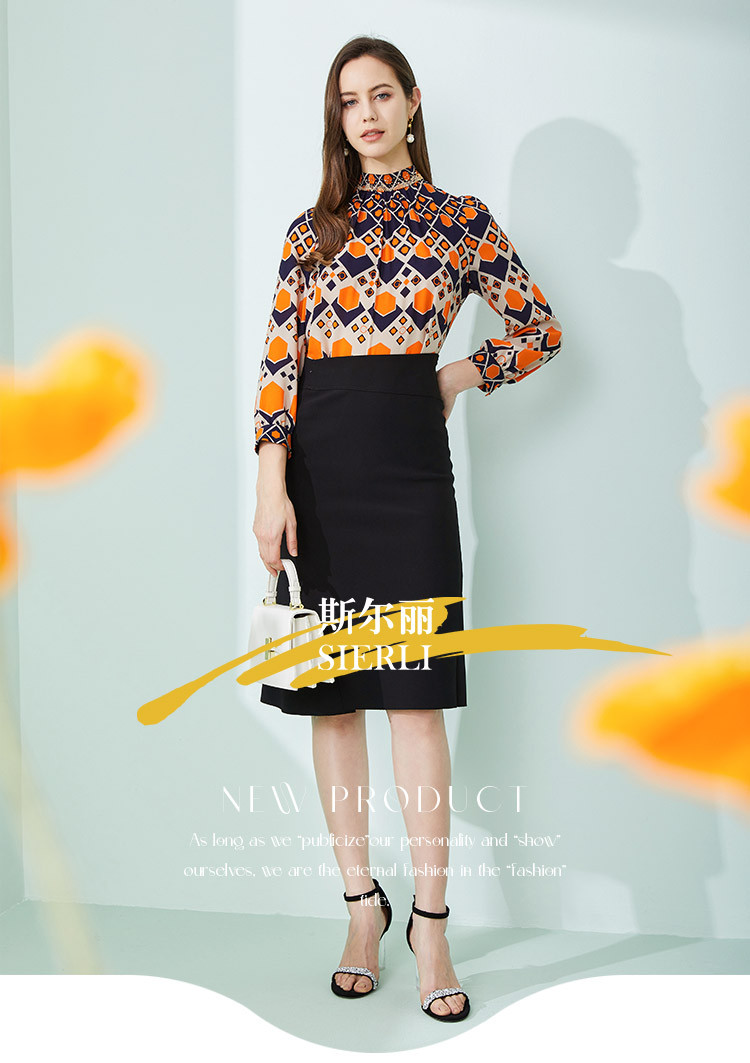 商品名称:商场同款春季通勤立领几何印花法式气质长袖衬衣 961375