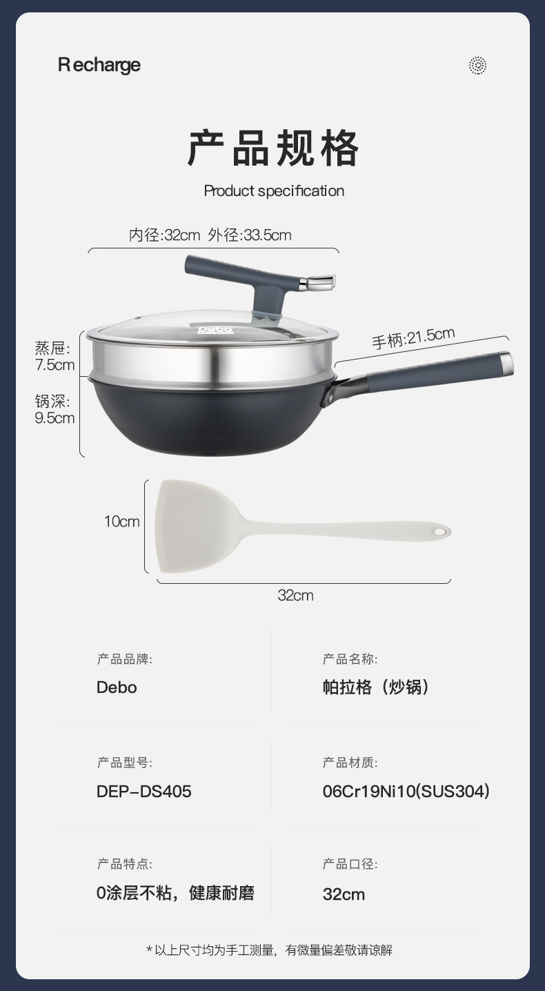 商品名称:Debo/德铂32cm帕拉格炒锅-含蒸屉DEP-DS405