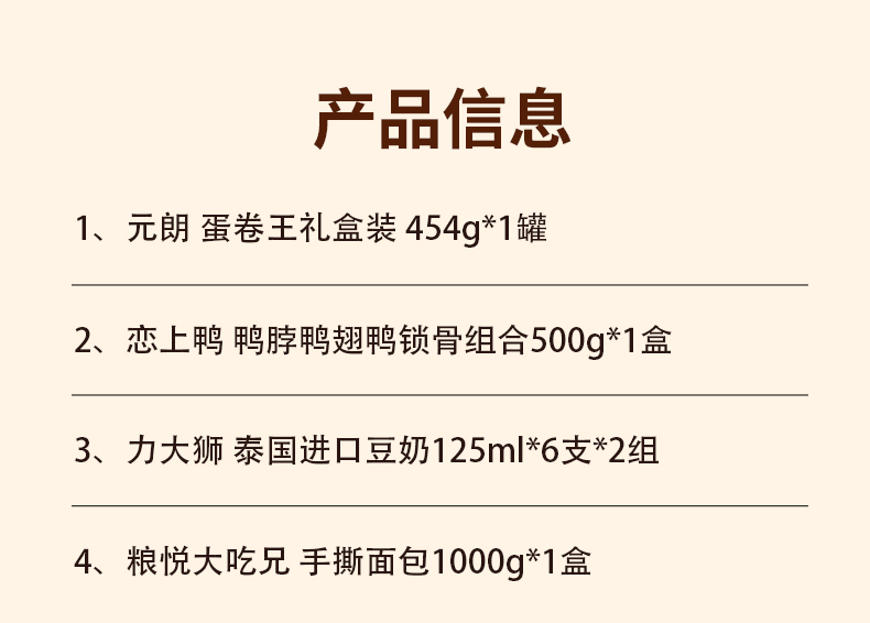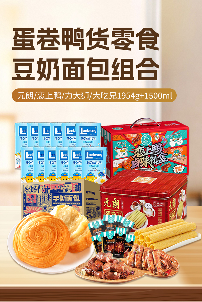 商品名称:【京东/顺丰配送】元朗/恋上鸭/力大狮/大吃兄 零食组合1954g+1500ml