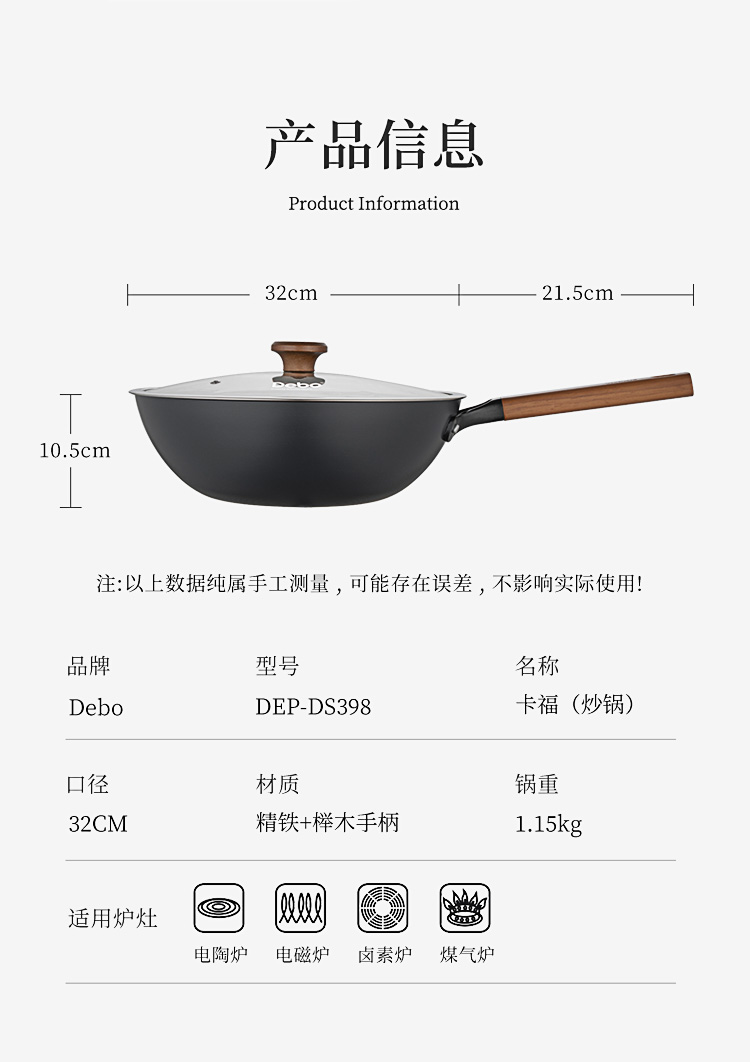商品名称:Debo/德铂32cm卡福炒锅DEP-DS398