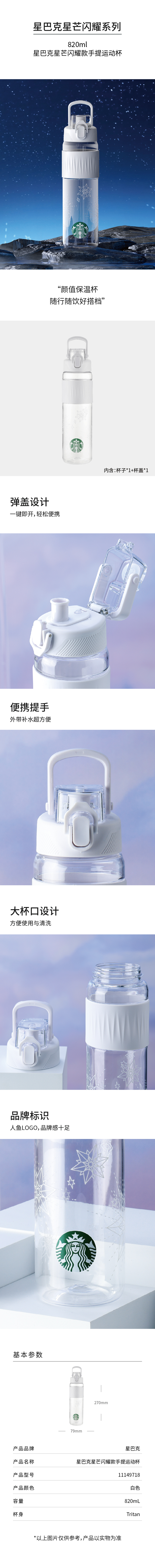 商品名称:STARBUCKS/星巴克820毫升星芒闪耀款手提运动杯-11149718