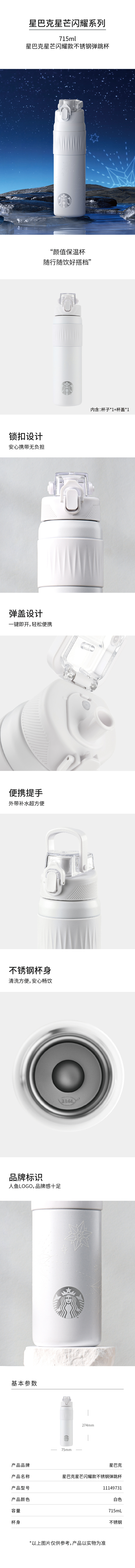 商品名称:STARBUCKS/星巴克715毫升星芒闪耀款不锈钢弹跳杯-白色11149731