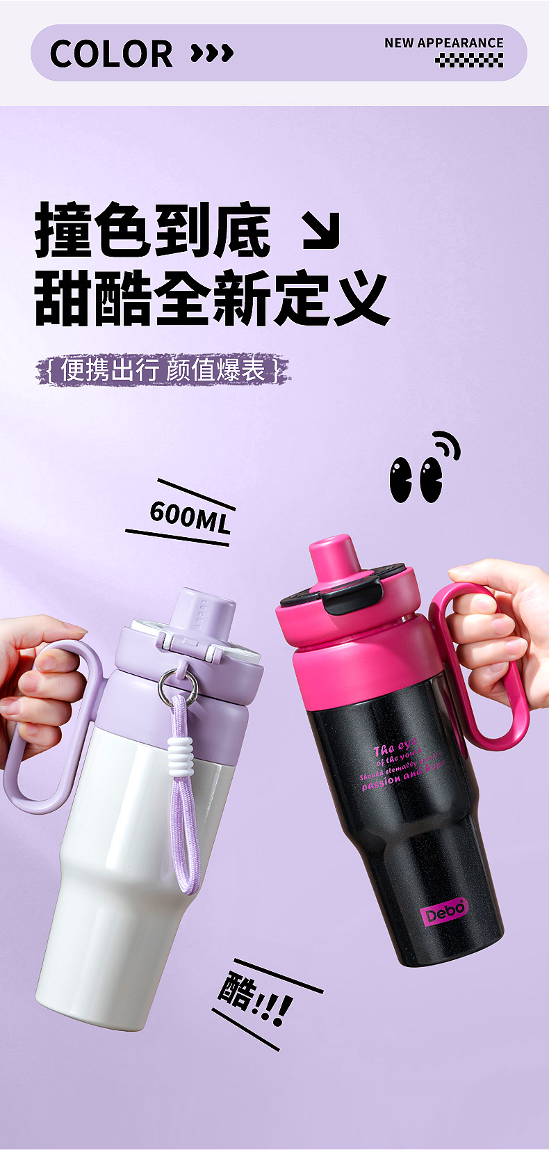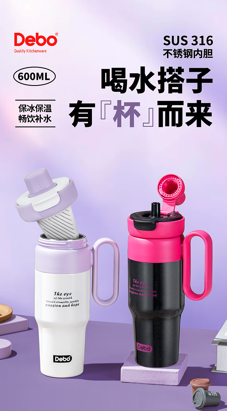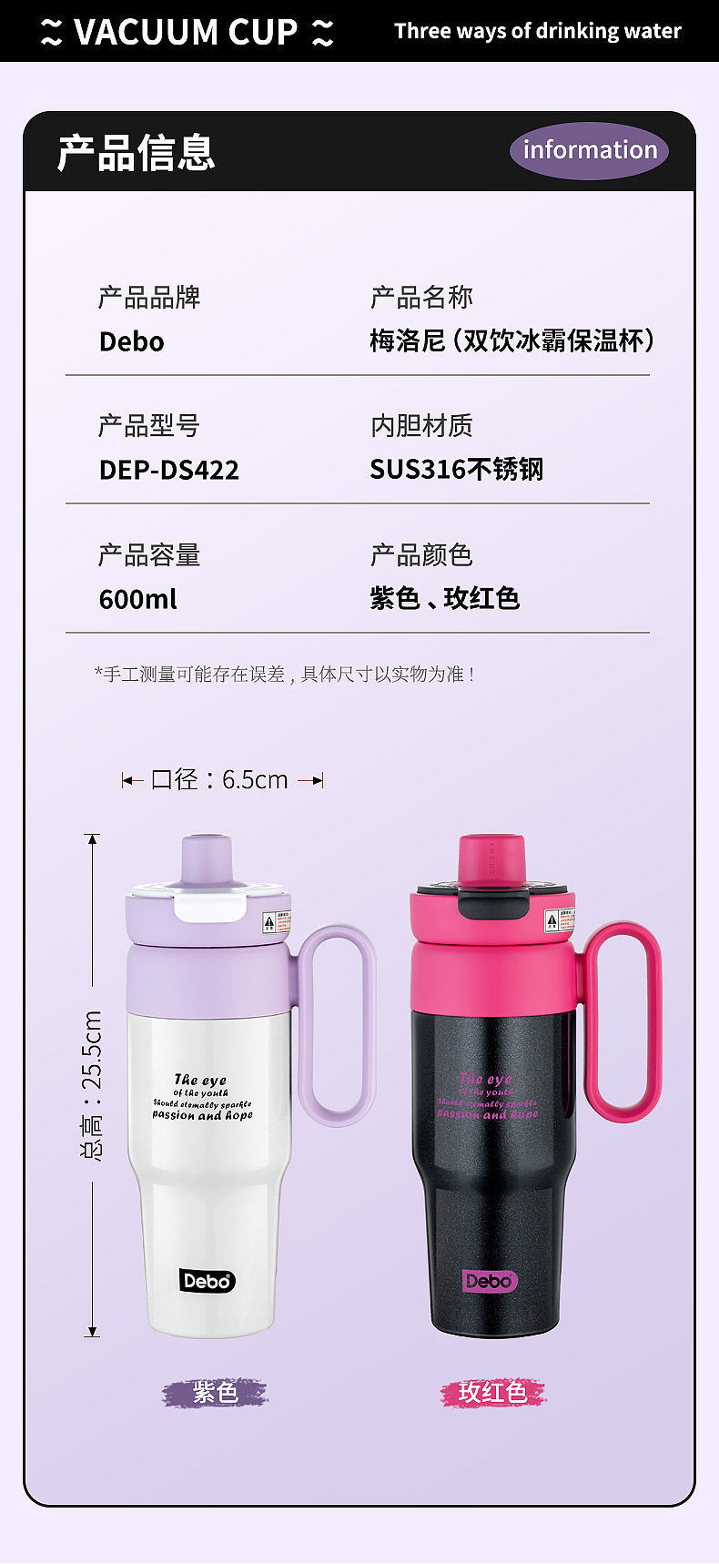 商品名称:Debo/德铂600毫升梅洛尼双饮冰霸保温杯DEP-DS422