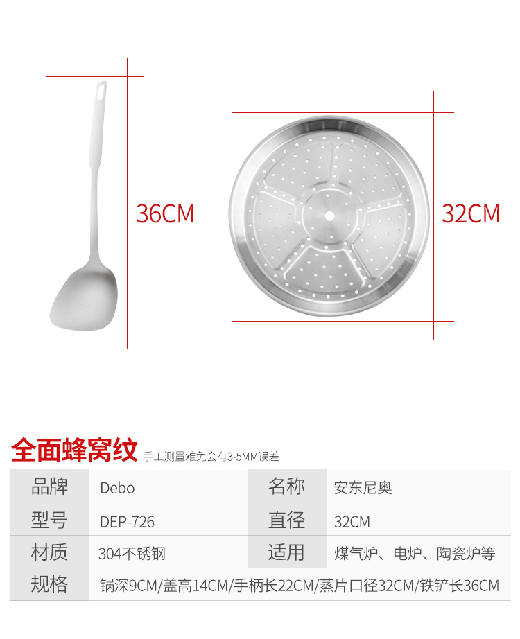 商品名称:Debo/德铂32cm安东尼奥蒸炒锅DEP-726