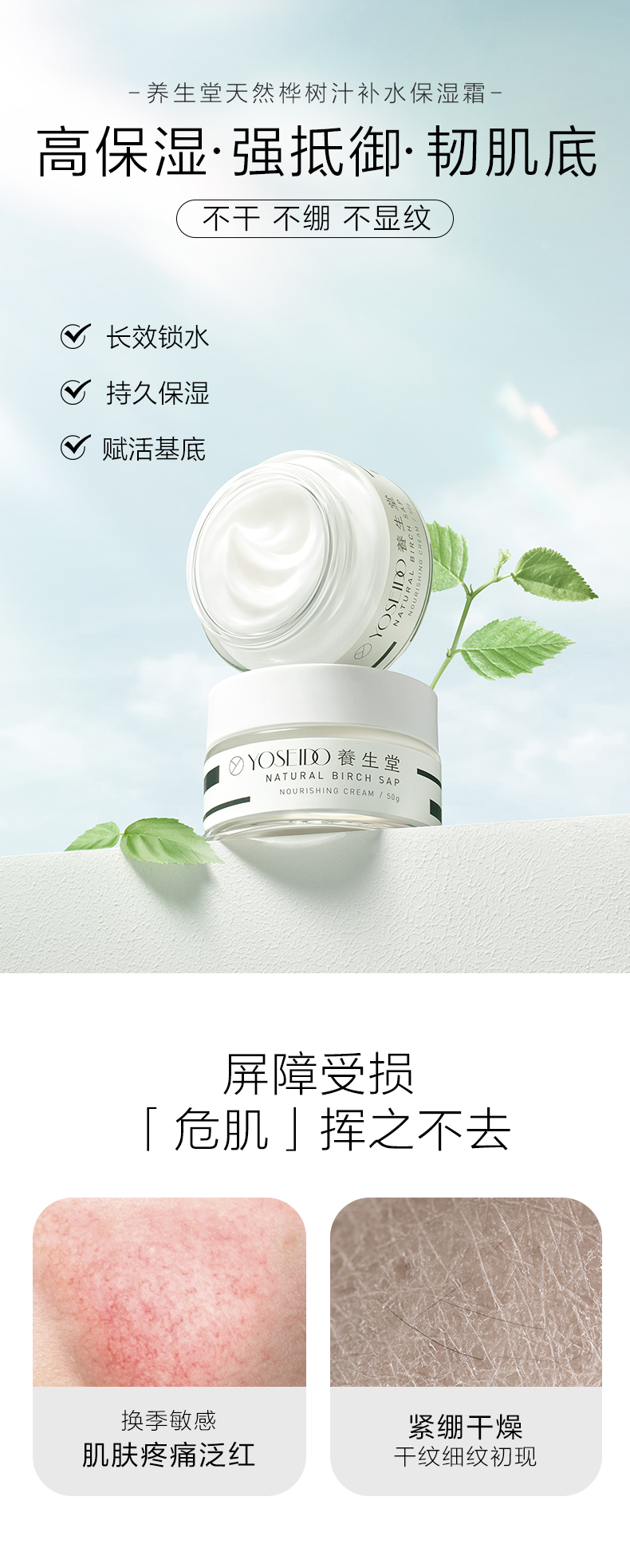 养生堂天然桦树汁补水保湿霜50g(专柜版)