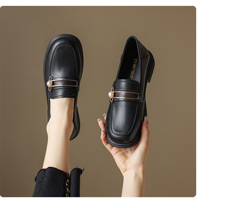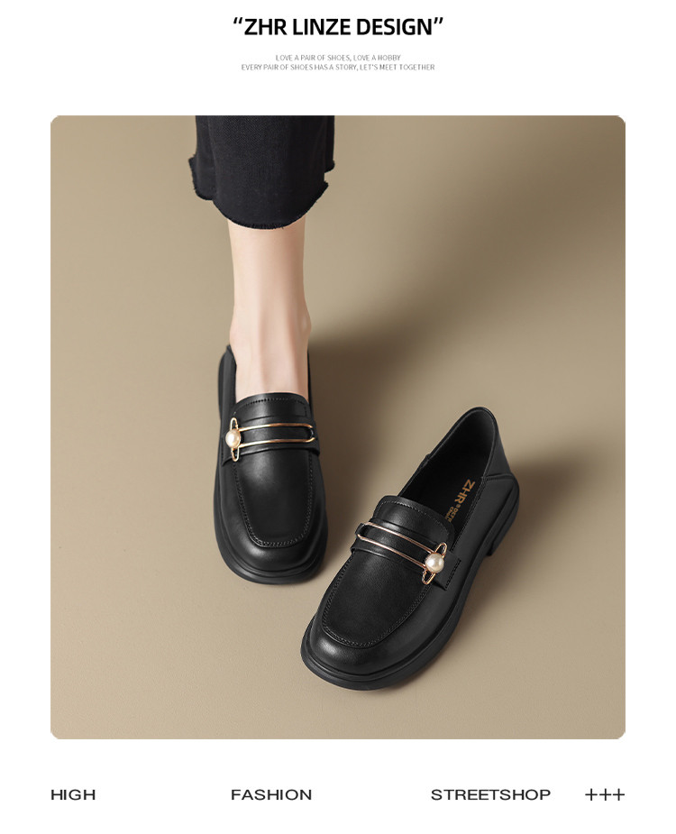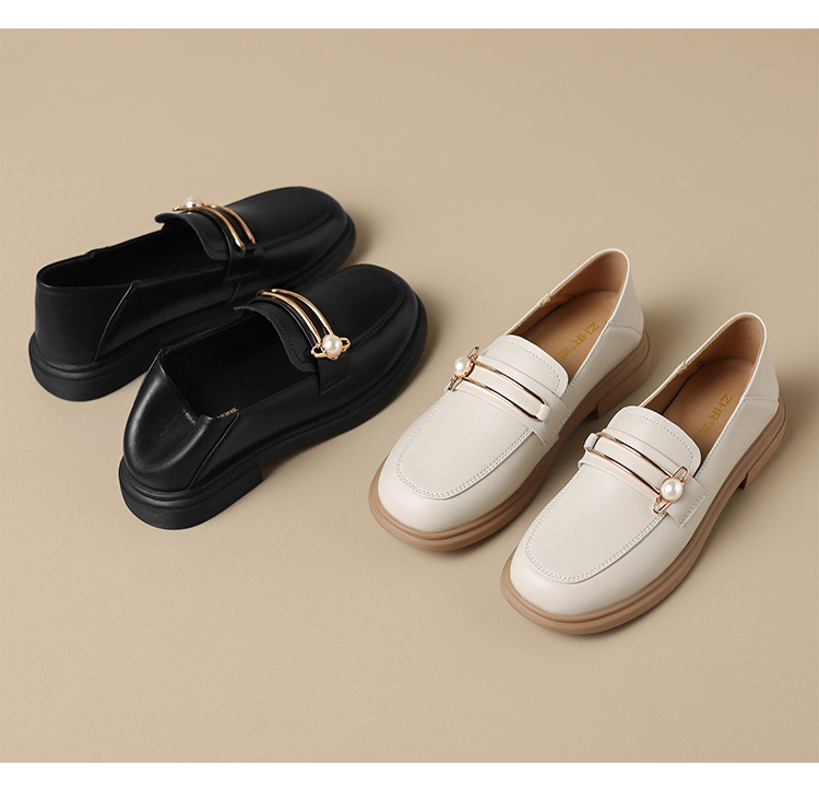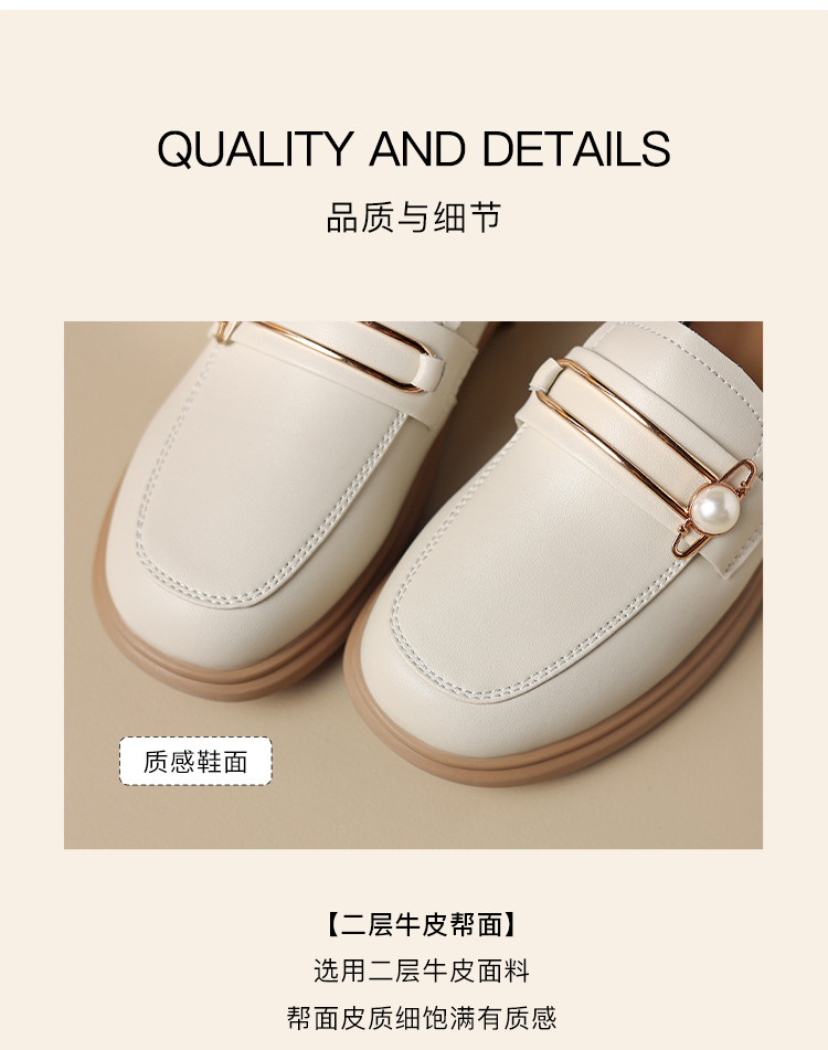 商品名称:【珍珠扣饰】两穿一脚蹬女鞋春秋英伦风小皮鞋平底鞋乐福鞋女单鞋 411200