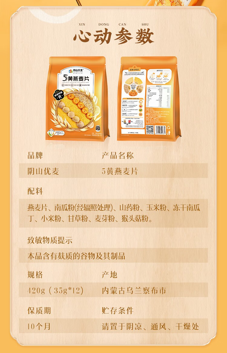 商品名称:YIN SHAN OATS/阴山优麦5黄燕麦片420g