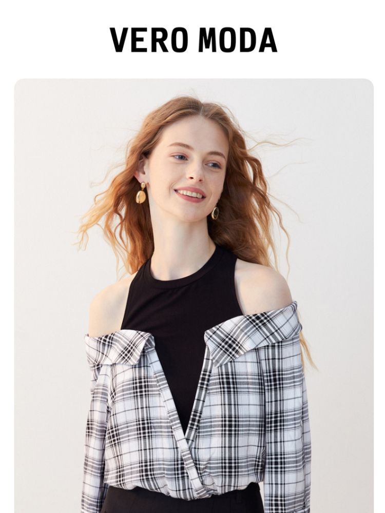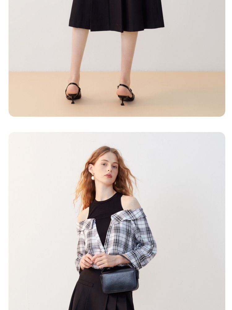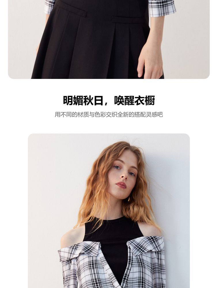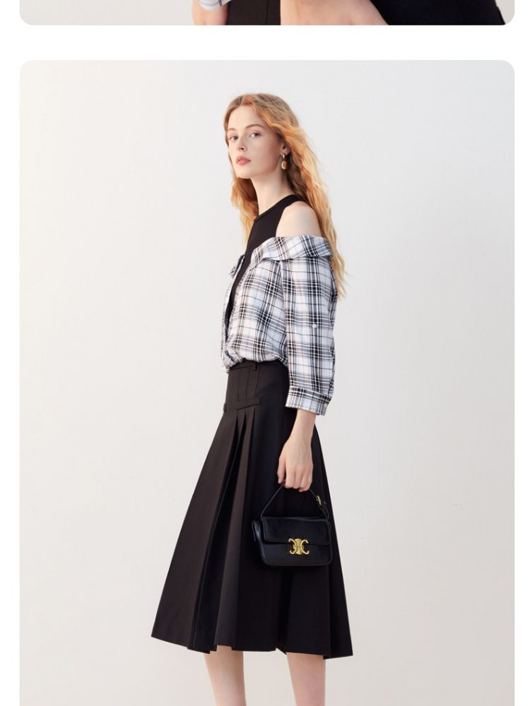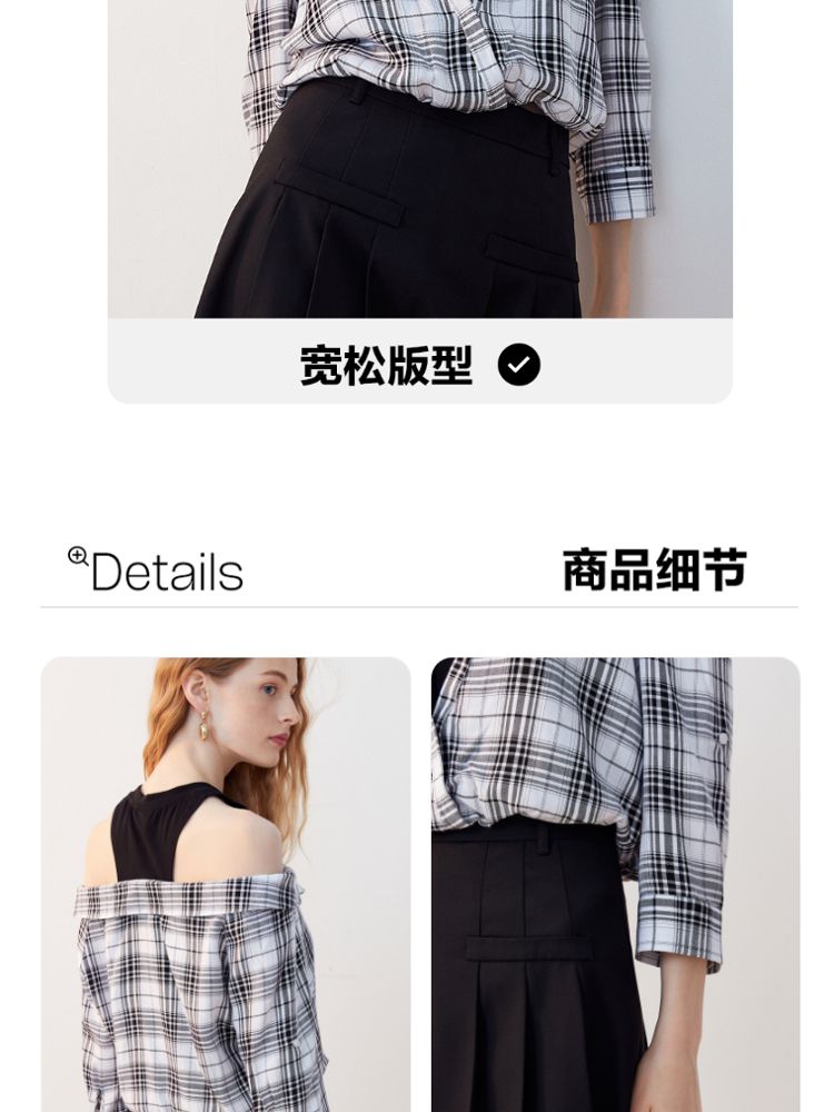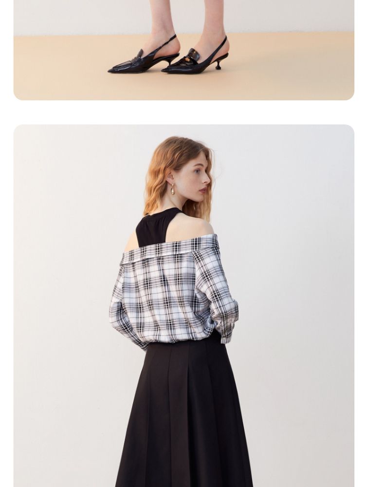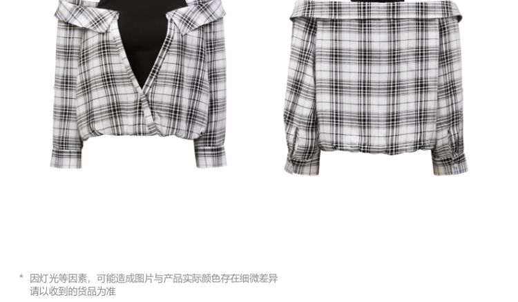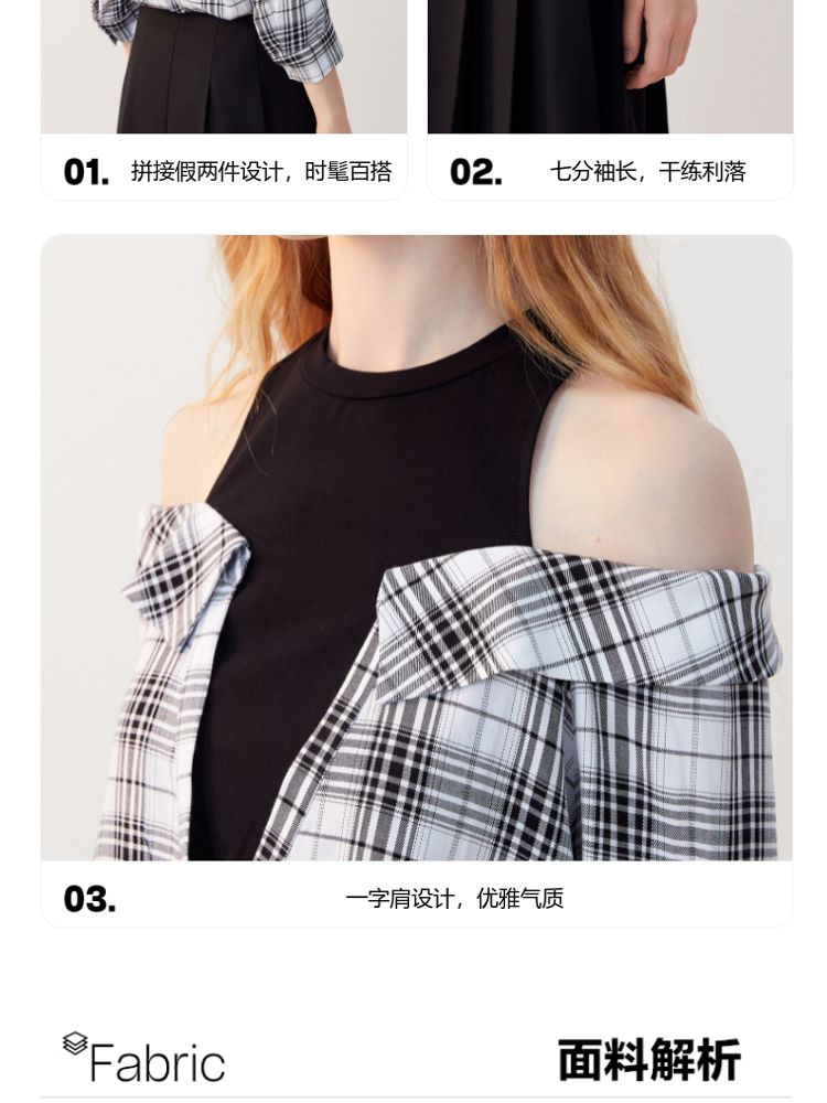 商品名称:【拼接假两件】春夏专柜款一字肩针织格纹衬衫气质百搭时尚 871121