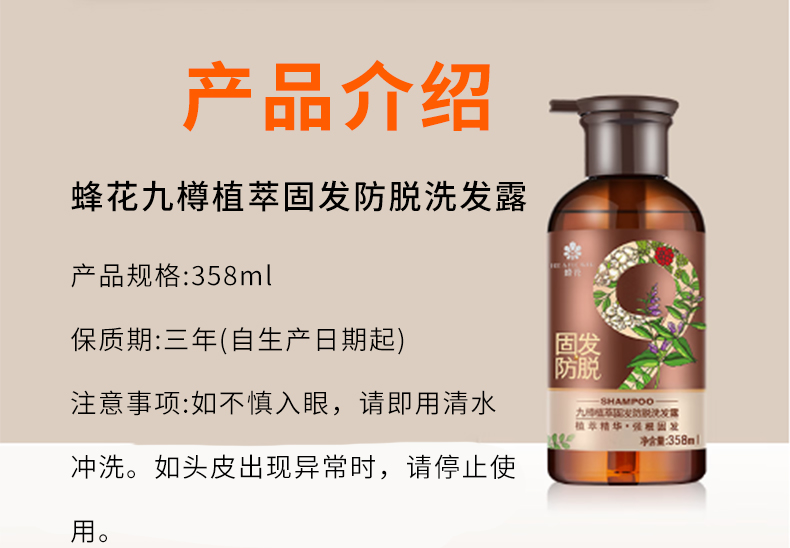 商品名称:BEE&FLOWER/蜂花九樽植萃固发防脱洗发露358ml