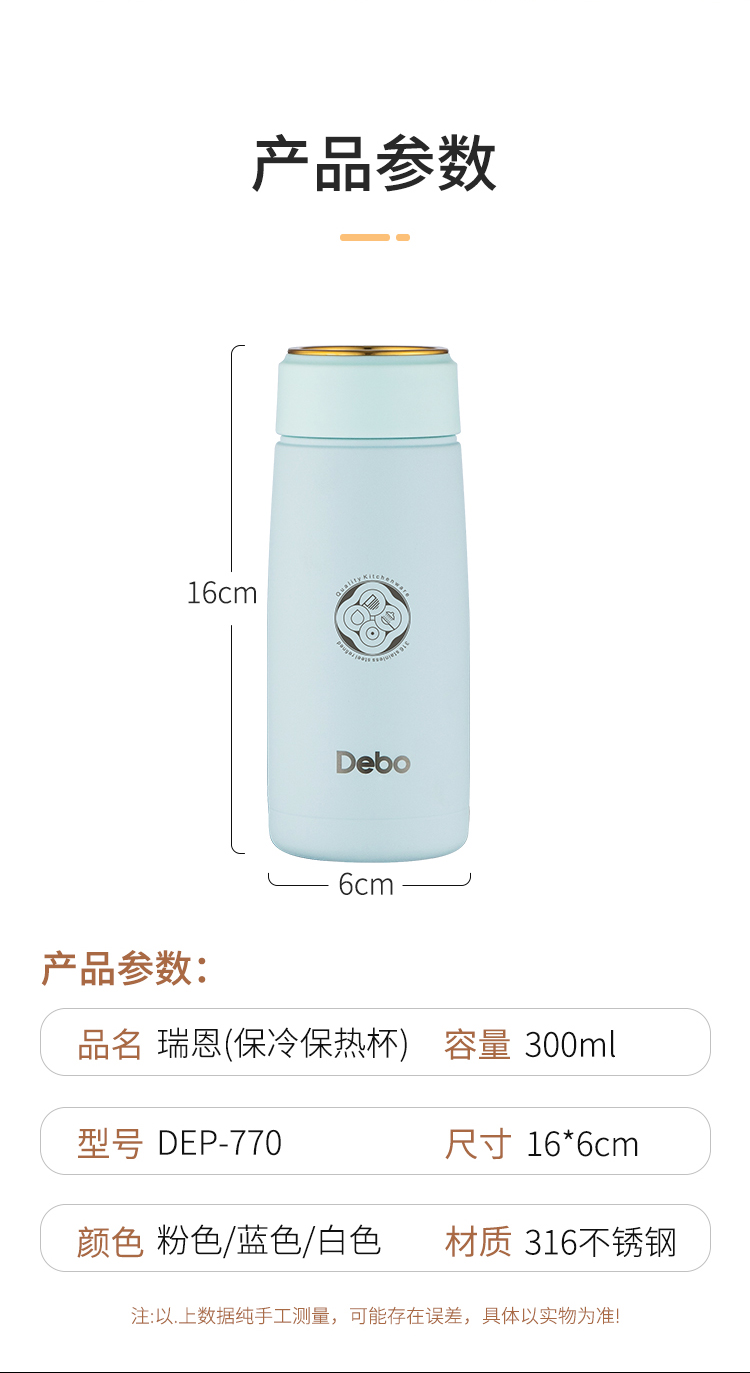 商品名称:Debo/德铂300毫升瑞恩保冷保热杯DEP-770