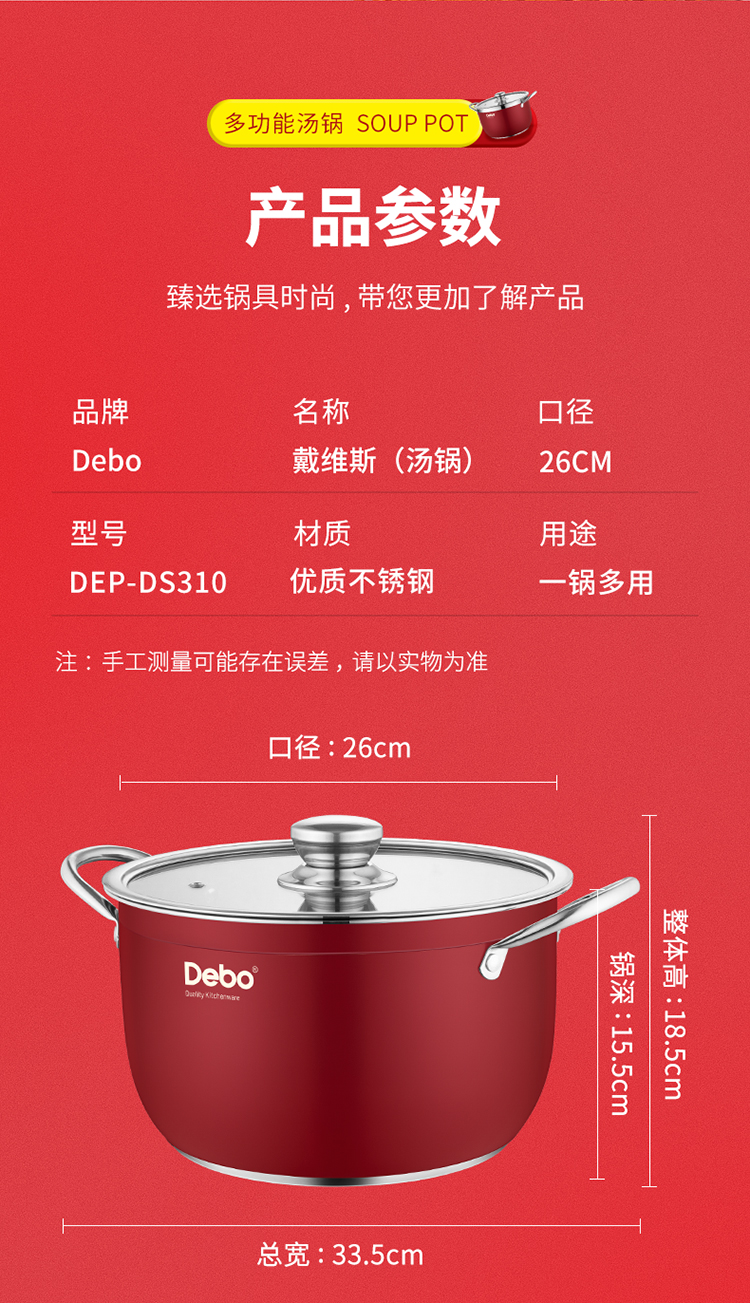 商品名称:Debo/德铂26cm戴维斯汤锅DEP-DS310