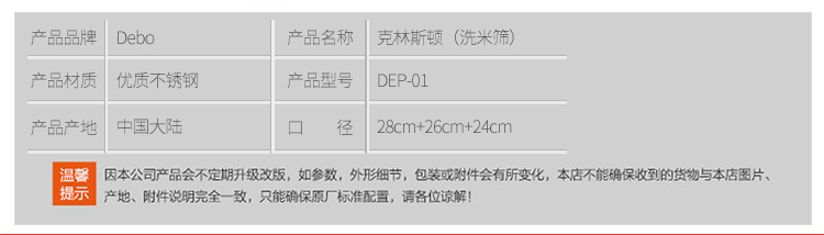 商品名称:Debo/德铂克林斯顿洗米筛组合DEP-01