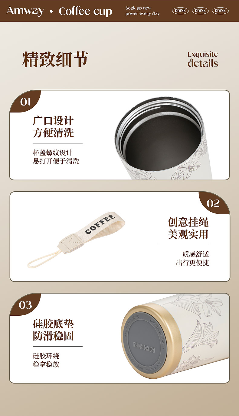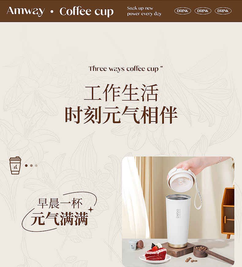 商品名称:Debo/德铂500毫升安利咖啡杯DEP-DS415