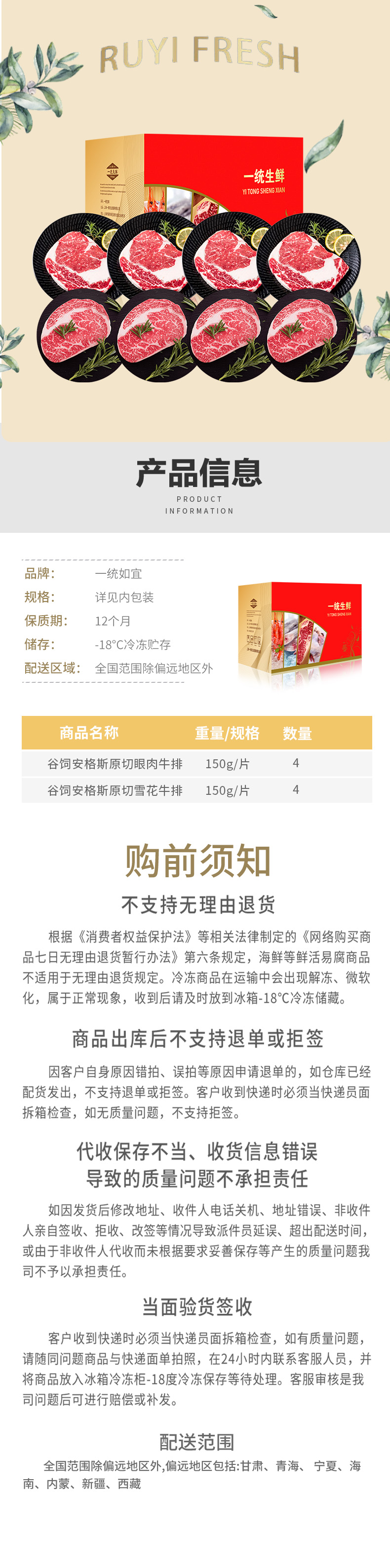 商品名称:【顺丰配送】一统如宜588型牛排礼盒1200g