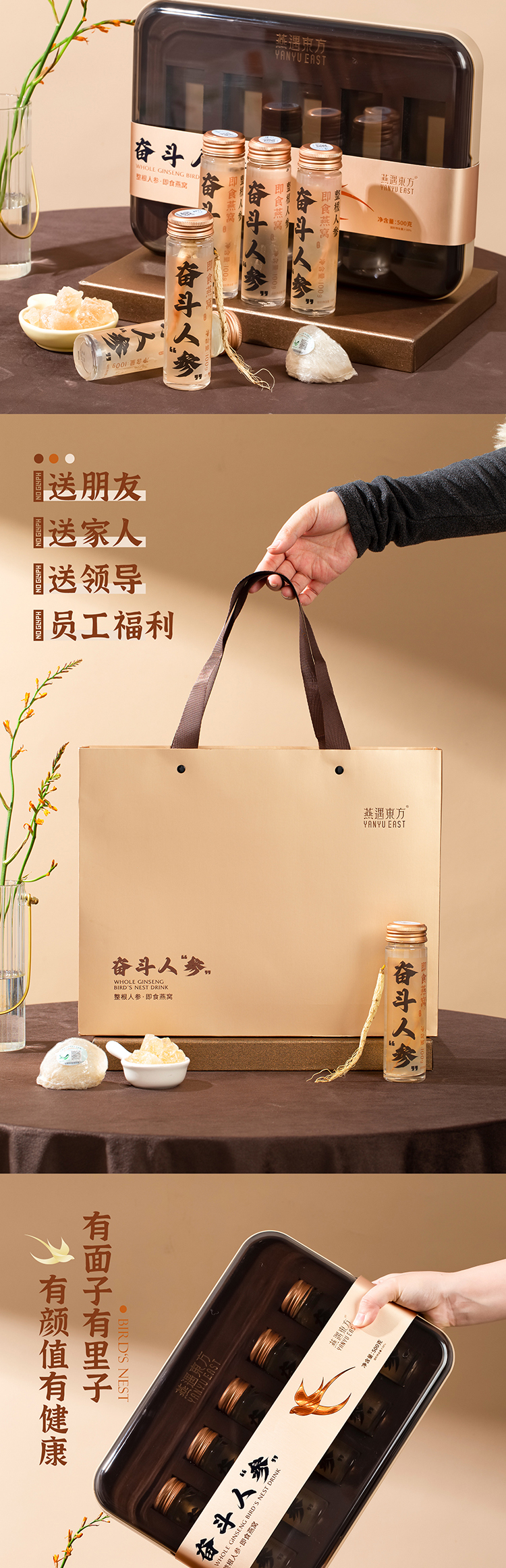 燕遇东方奋斗人参即食燕窝礼盒100g*5瓶
