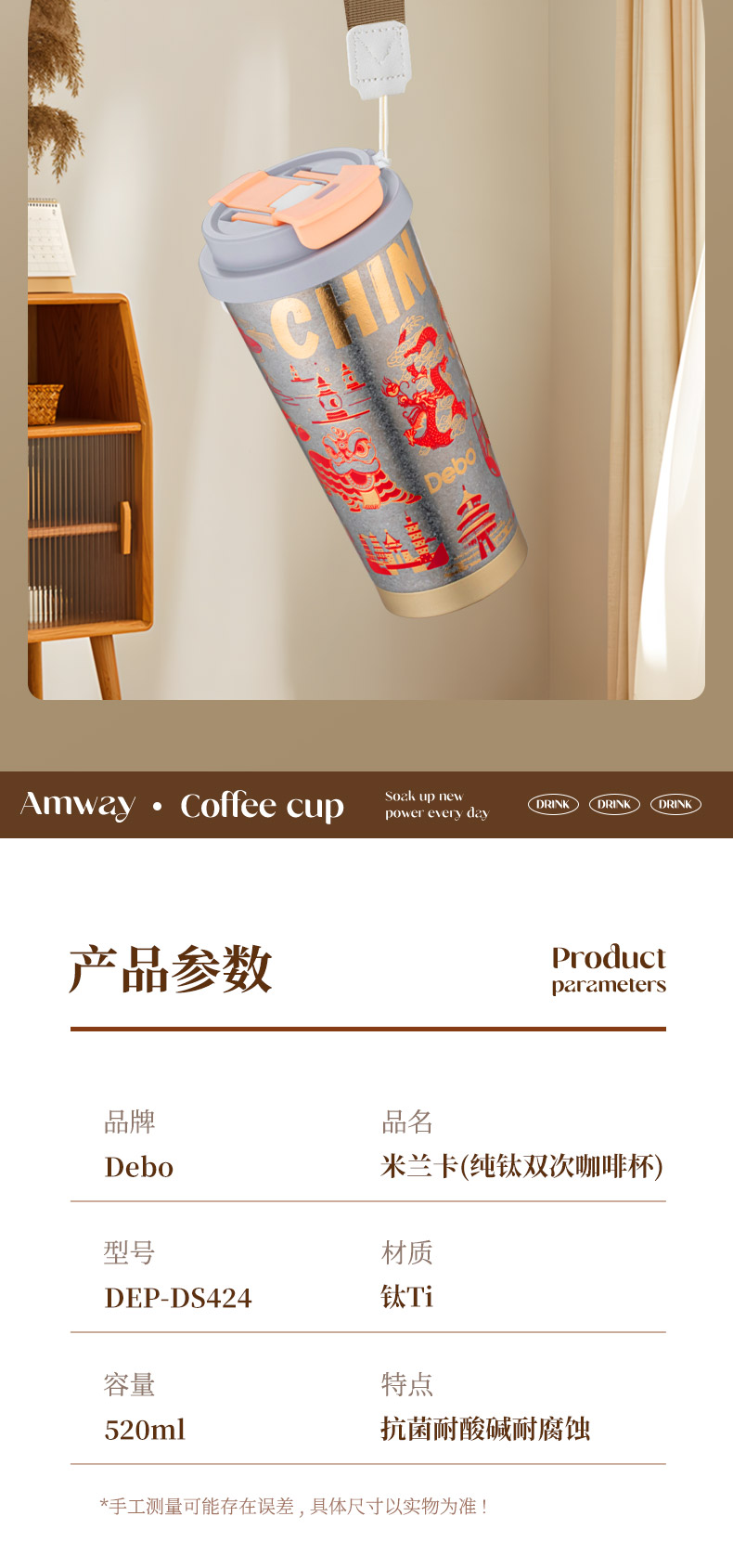 Debo/德铂520毫升米兰卡纯钛双次咖啡杯DEP-DS424