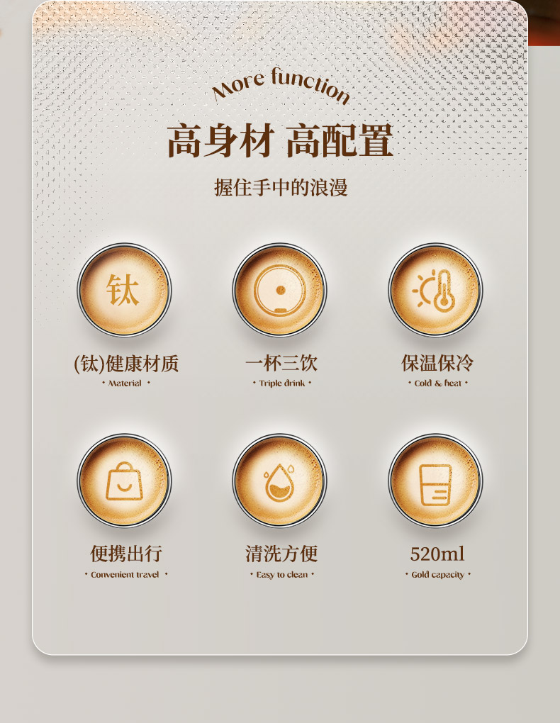 商品名称:Debo/德铂520毫升米兰卡纯钛双次咖啡杯DEP-DS424