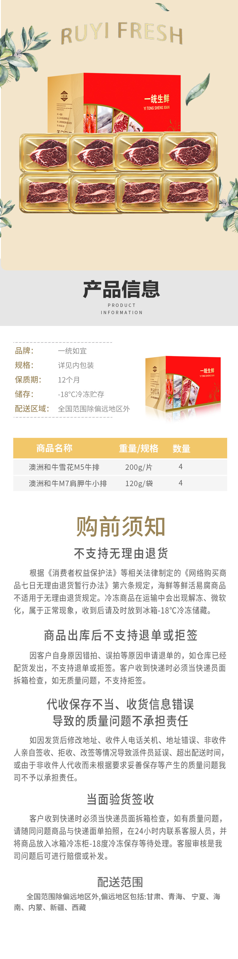 商品名称:【顺丰配送】一统如宜888型澳洲和牛礼盒1280g