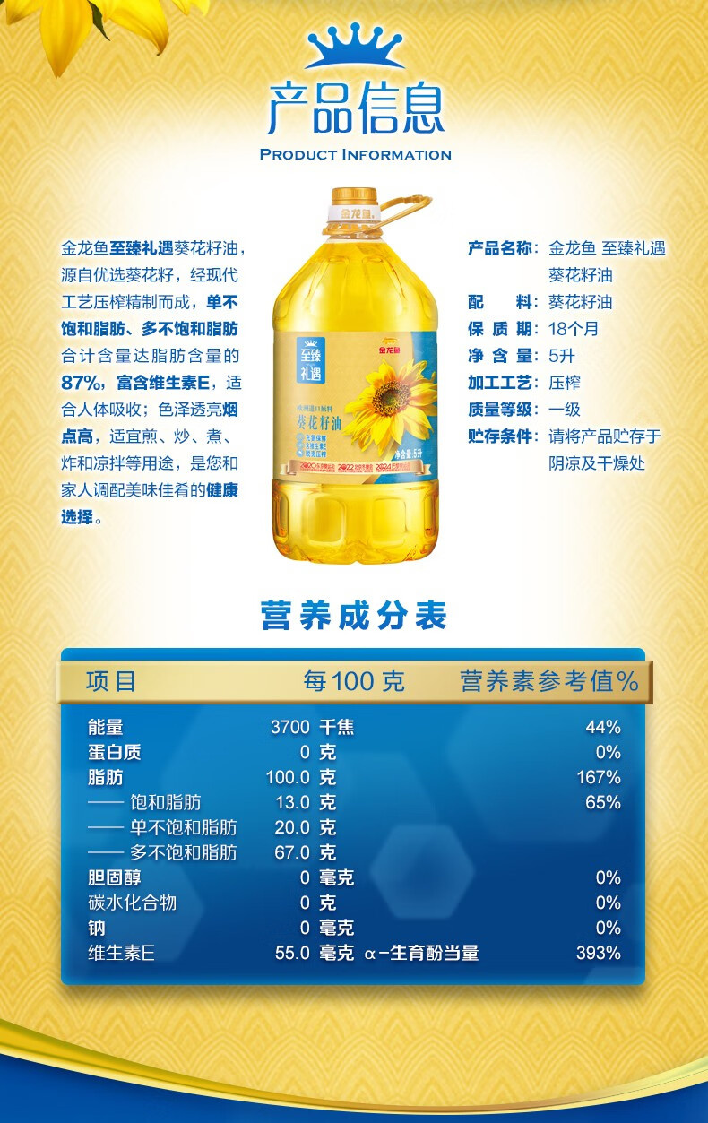 商品名称:【京东/德邦配送】金龙鱼/五得利 油面组合5kg+5L