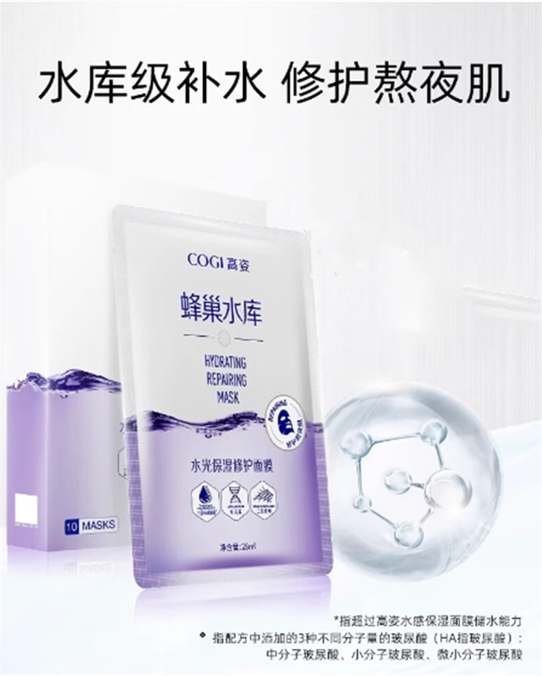 商品名称:COGI/高姿水光保湿修护面膜-紫色28ml*10片