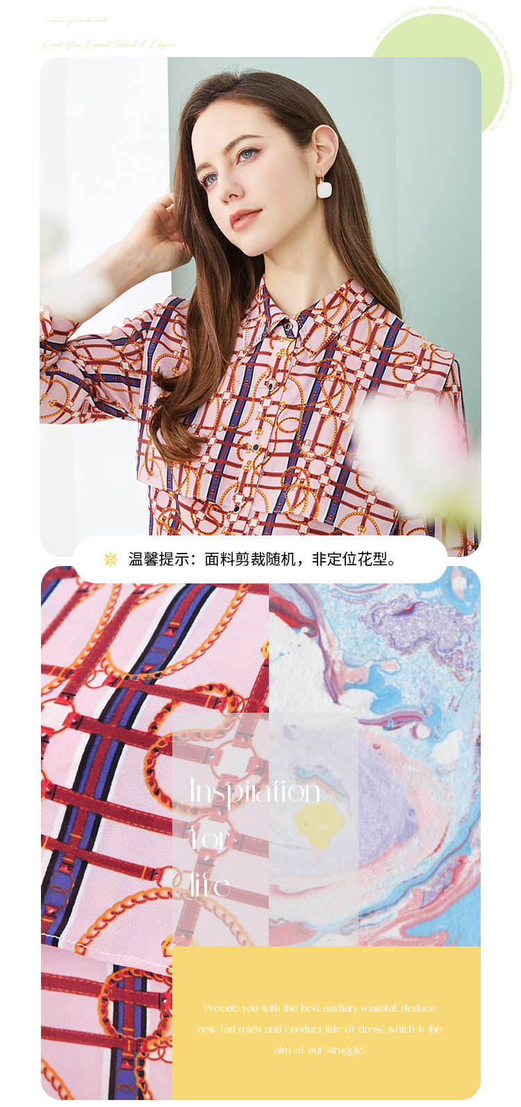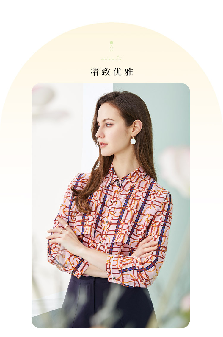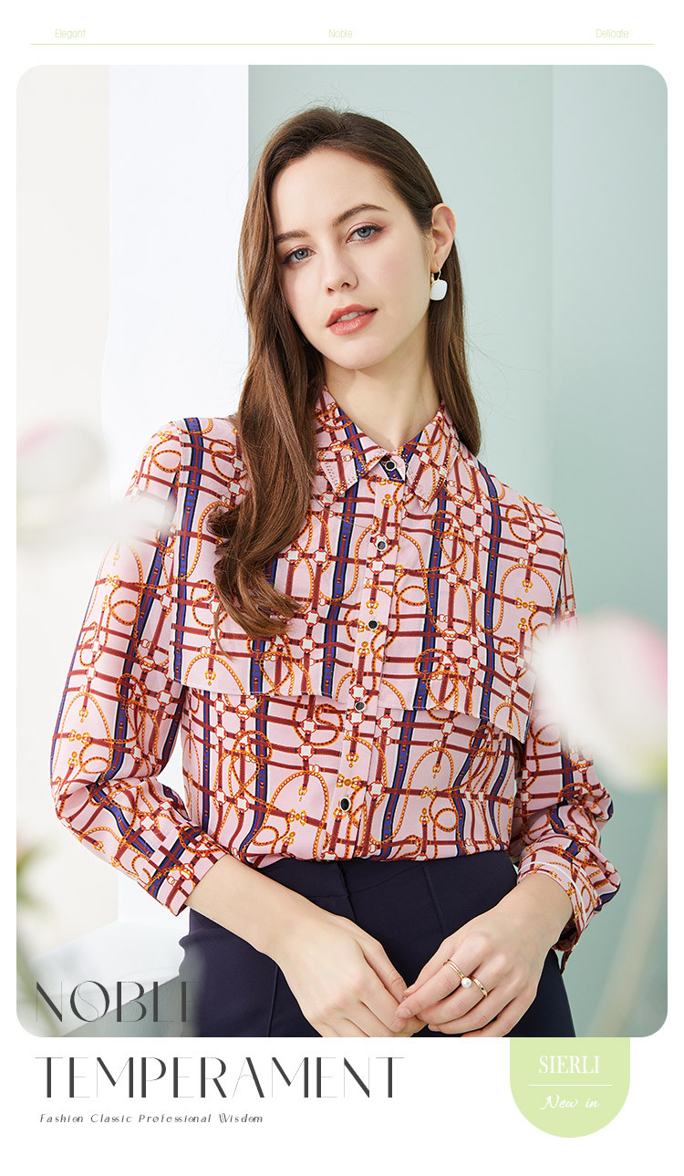 商品名称:商场同款春季复古巴洛克印花叠层宽松通勤款长袖衬衣 645791