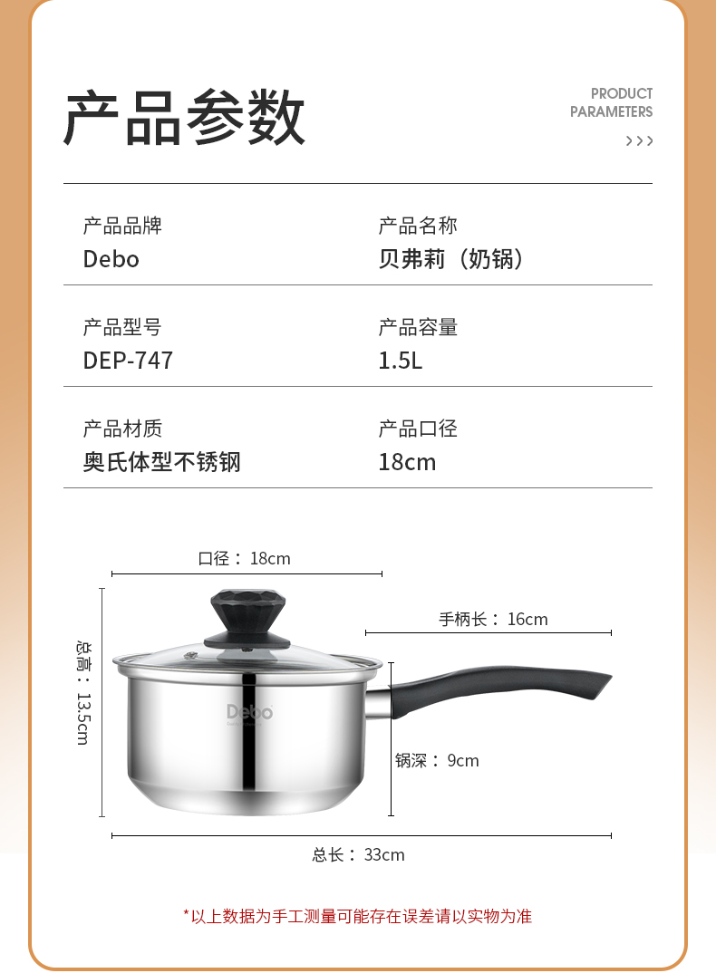 商品名称:Debo/德铂18cm贝弗莉奶锅DEP-747