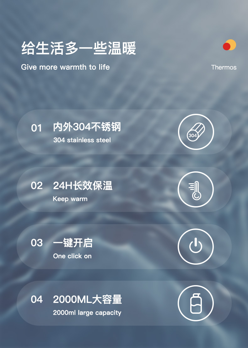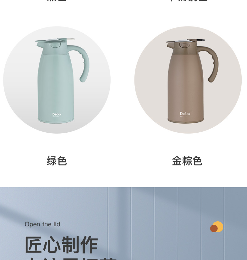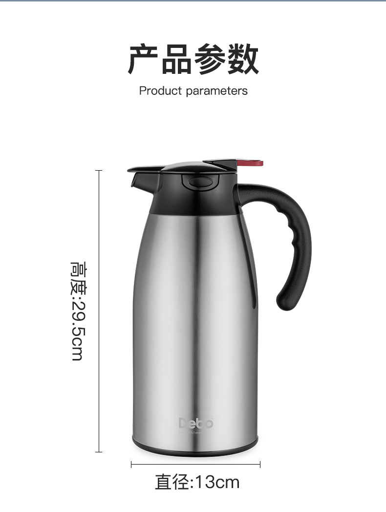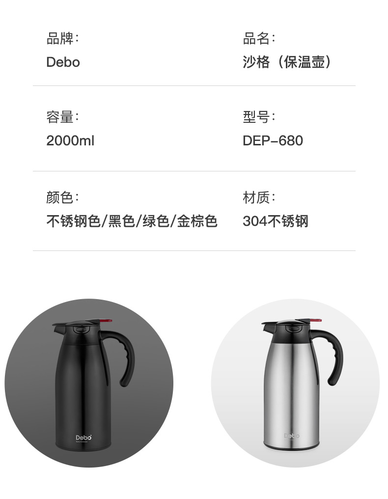 商品名称:Debo/德铂2000毫升沙格真空保温壶DEP-680