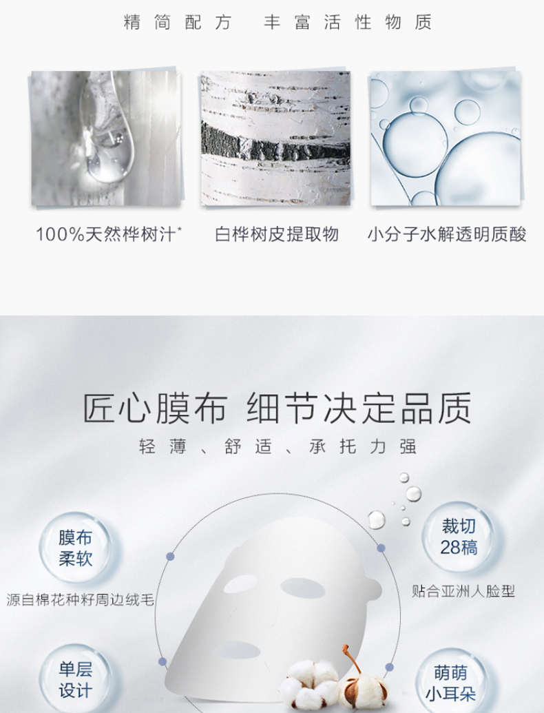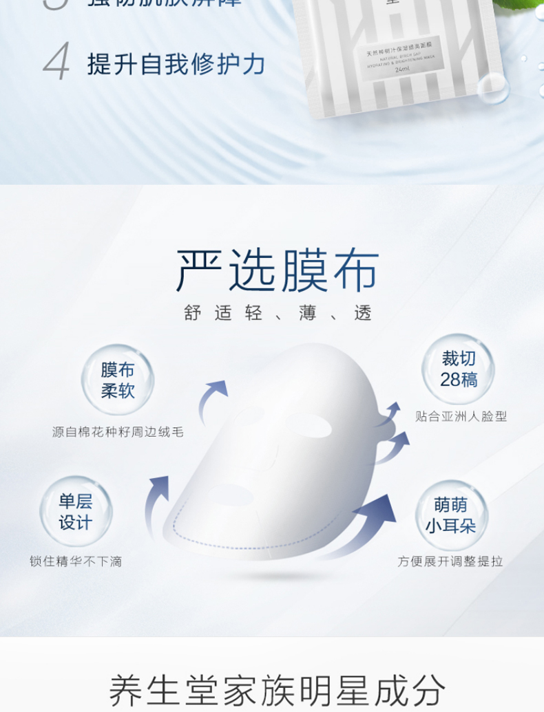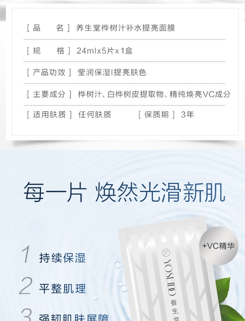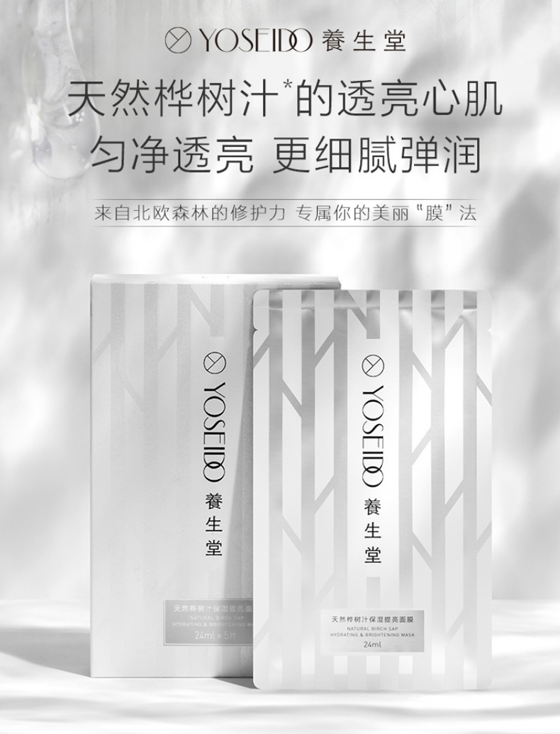 养生堂天然桦树汁保湿提亮面膜24ml*5片(专柜版)