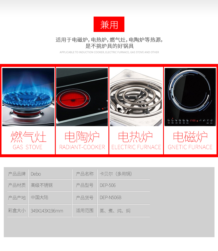 商品名称:Debo/德铂16cm卡贝尔多用锅DEP-506
